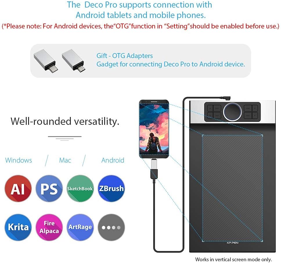 • [Широка съвместимост, широки възможности] XP-PEN Deco Pro поддържа Windows, Mac OS, Android, Chrome OS и Linux системи. Съвместим е с повечето програми за рисуване: Photoshop, SAI, Painter, Illustrator, Krista, Clip Studio, Blender 3D и други. Освободете креативността си с повече възможности.
