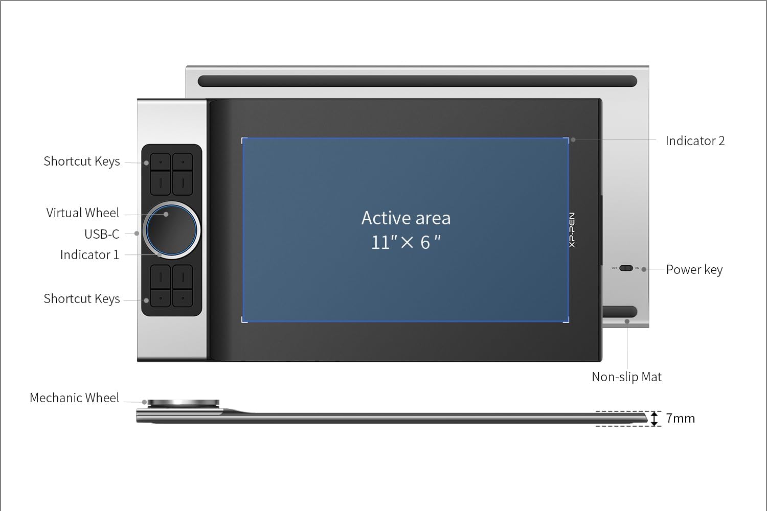 Графичен таблет XP-PEN Deco Pro MW с Bluetooth писалка, 11" x 6" за рисуване и редактиране на снимки, таблет за рисуване с накланяне, 8 бутона и 2 колелца за превъртане, идеален за домашен офис и електронно обучение.