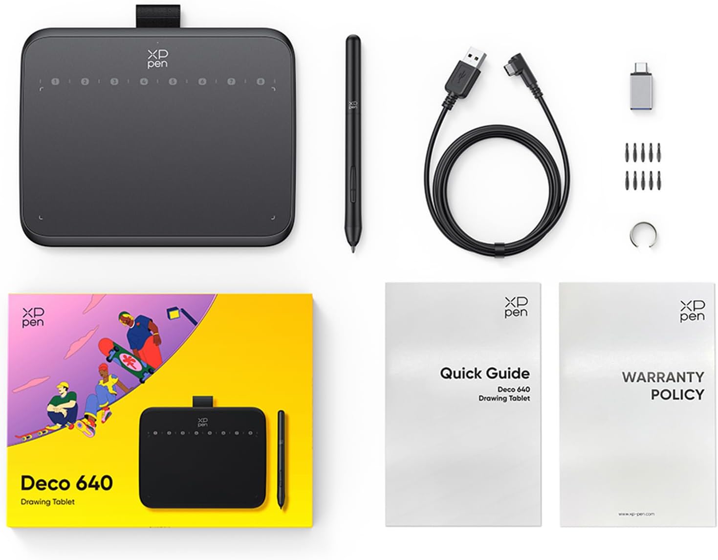 Графичен таблет XPPen Deco 640, 16K нива на налягане, 6x4 инча, таблет за рисуване с 8 клавиша за бърз достъп, за чертане в OSU Signature