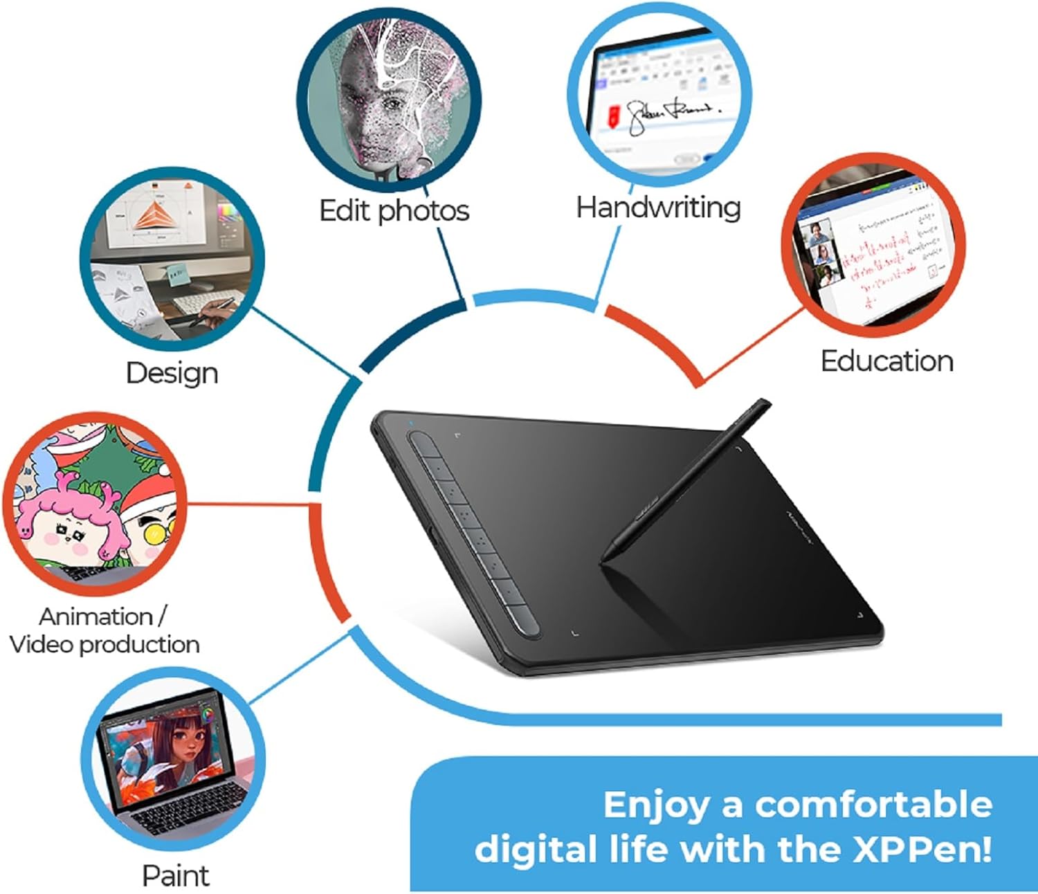 • Лесен за носене дизайн: работна площ 8" x 5", правилният размер за творчество; тънък корпус от 8,8 мм и тегло от 10 унции за удобно докосване и лесна преносимост.