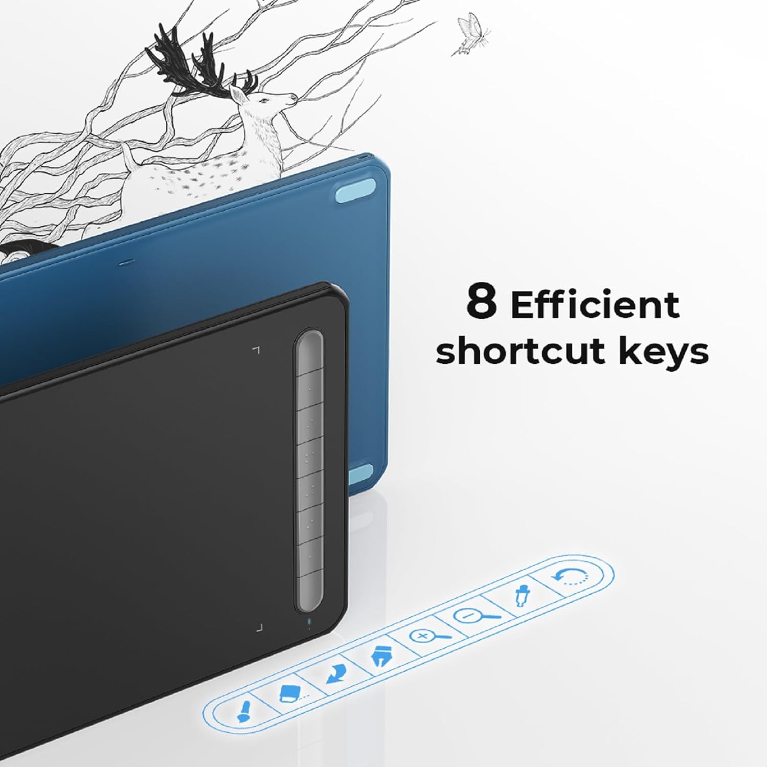 • 8 персонализируеми бързи клавиша: Таблетът за рисуване Deco MW разполага с 8 персонализируеми бързи клавиша, които могат да бъдат персонализирани според вашите специфични нужди, замествайки компютърната клавиатура. Поредица от тактилни издатини по клавишите ви позволява бързо да идентифицирате правилния бърз клавиш, дори в слаба среда, ускорявайки работния ви процес.