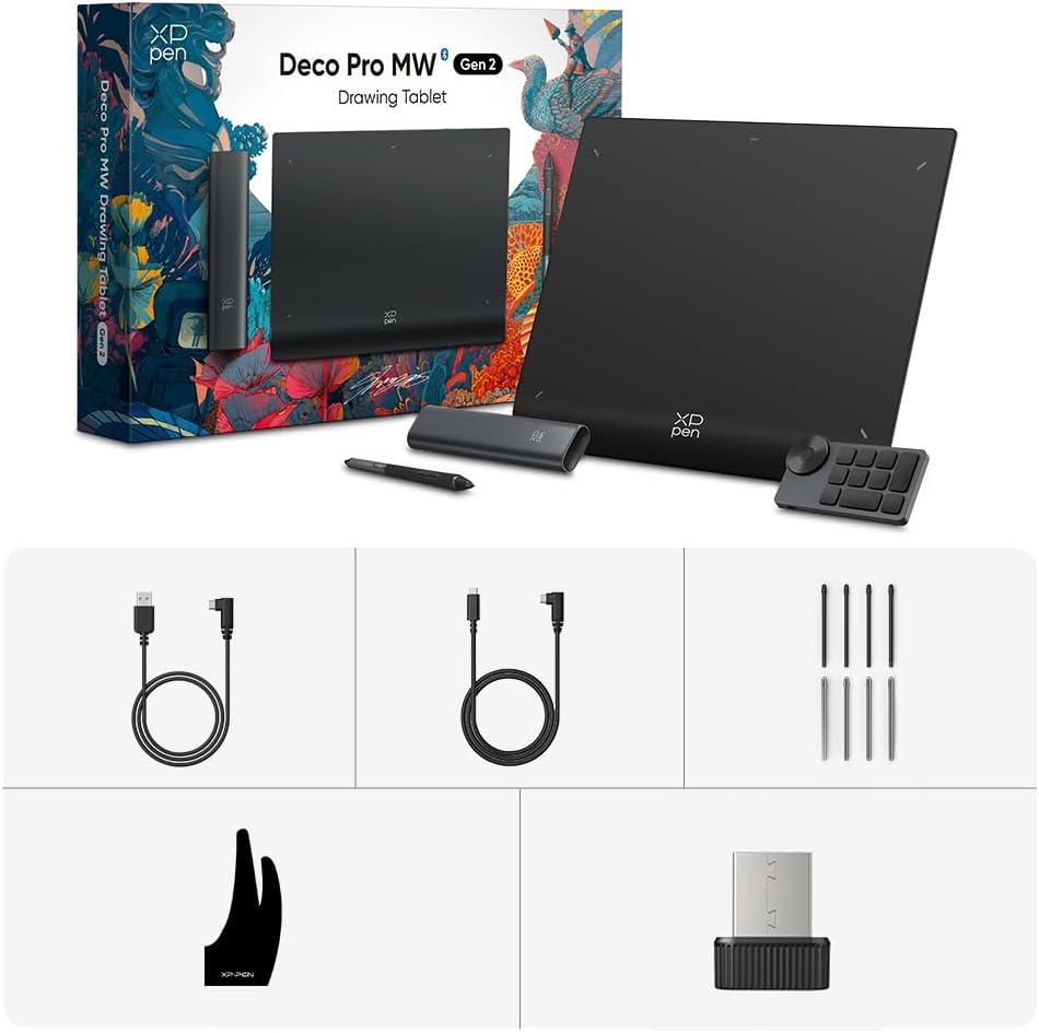 Графичен таблет XPpen, Deco Pro LW (2-ро поколение) Bluetooth 5.0 графичен таблет, 16K (16384) писалка с ниво на натиск и клавишни комбинации, съвместим с Windows Chrome OS macOS Linux