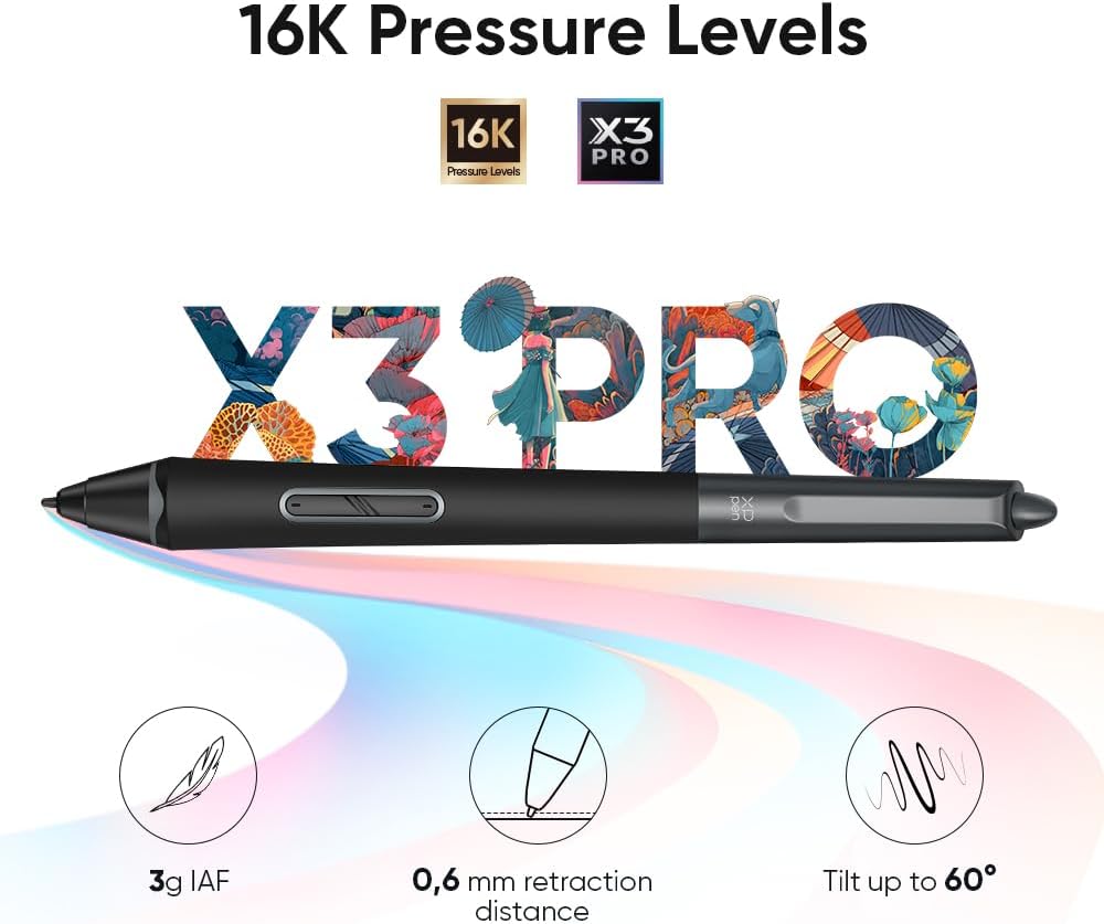• Графичният таблет XPPEN, съчетан с писалката X3 Pro Smart Chip с първите в света нива на натиск от 16k, 100% по-високи от конкурентите си. Той осигурява далеч по-прецизни и по-гладки линии от всякога, което го прави идеален за хипер-нюансирани творения и не само.