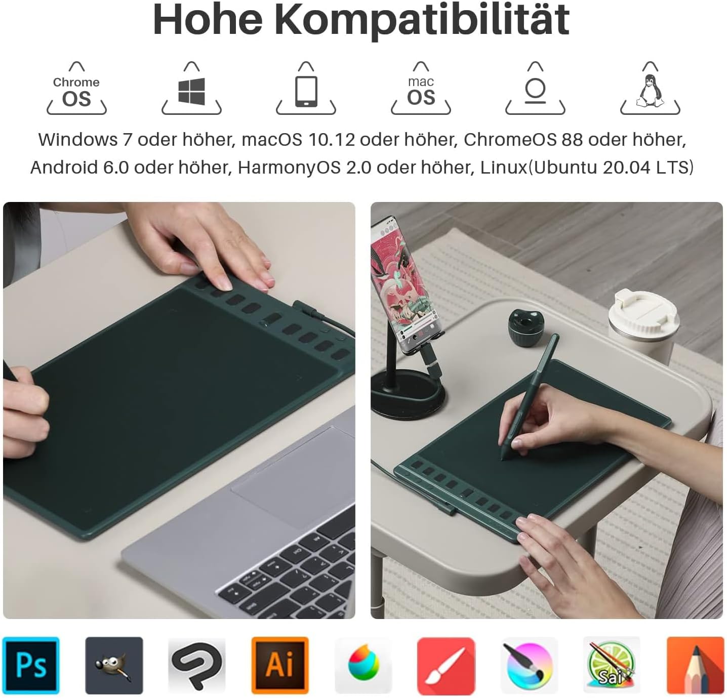 • Съвместимост с множество операционни системи: Inspiroy 2 M може да се похвали със силна съвместимост, поддържайки шест основни операционни системи (Windows/macOS/LinuxOS/ChromeOS/AndroidOS/HarmonyOS) и може да се използва перфектно на повечето устройства. HUION Inspiroy 2 M е идеален за професионални творци, студенти и любители.