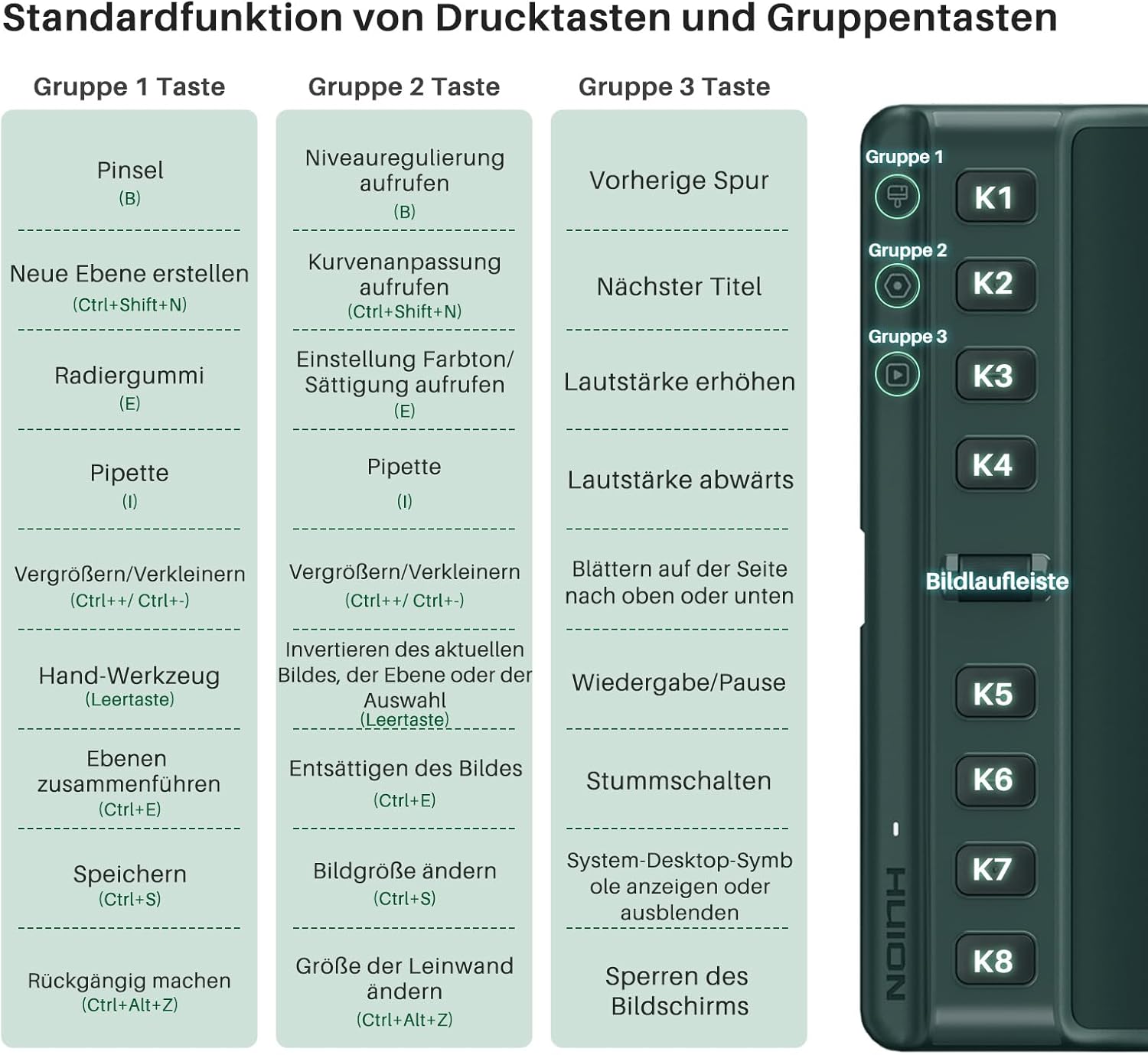 • Предефинирайте бързите клавиши: 8-те основни клавиша за бързи клавиши на традиционния цифров таблет са трансформирани в 24, безпрецедентна функция. В същото време графичният таблет HUION Inspiroy 2 M е оборудван с ефикасни инструменти като преглед на стойностите на клавишите и скролер. Inspiroy 2 е най-добрият избор за вас, за да започнете своето пътешествие в рисуването на ръка.
