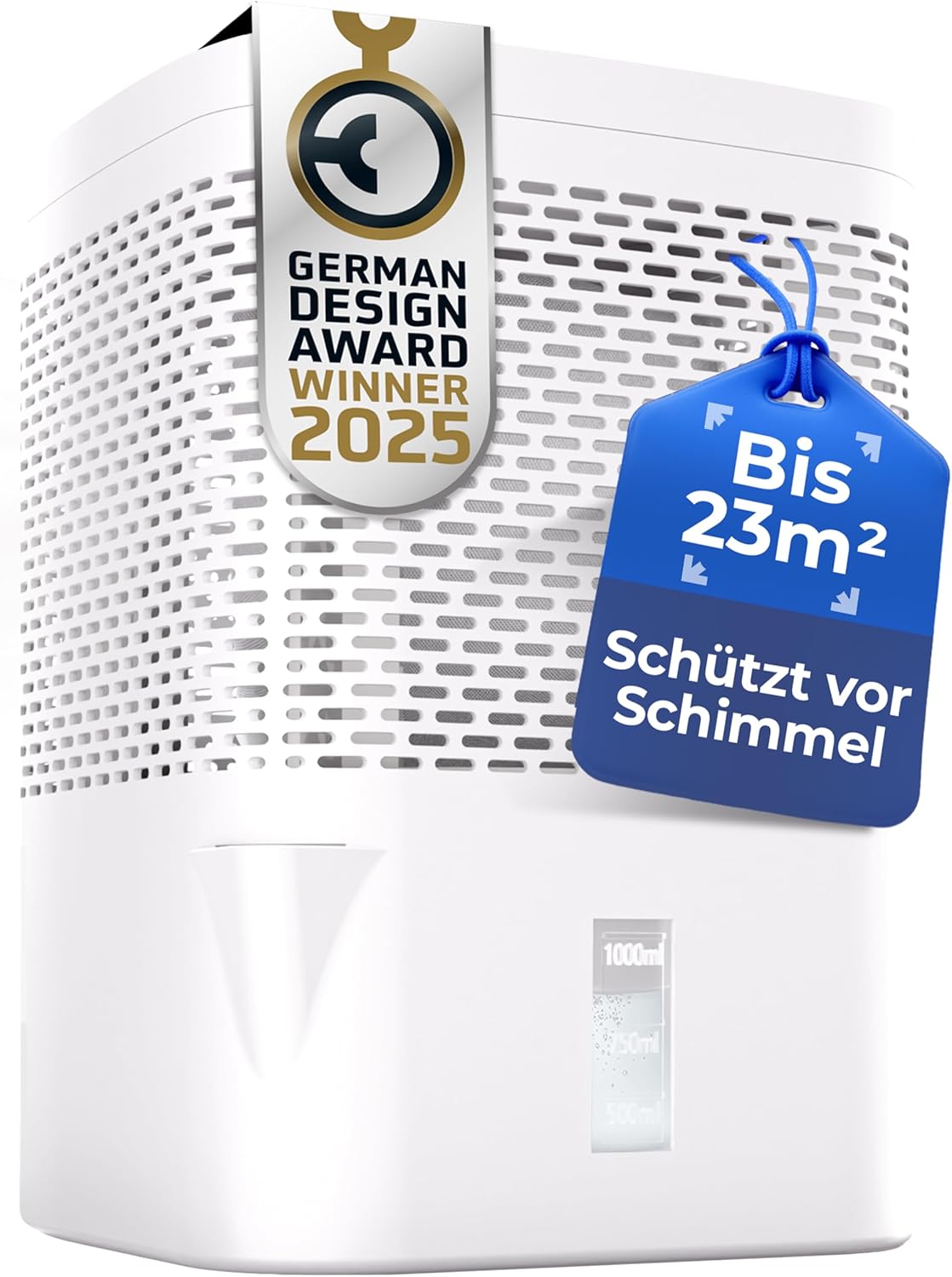 • Усъвършенствана концепция: влагоабсорбаторът ви спестява много работа благодарение на вградения чучур и индикатора за ниво от 1 литър.