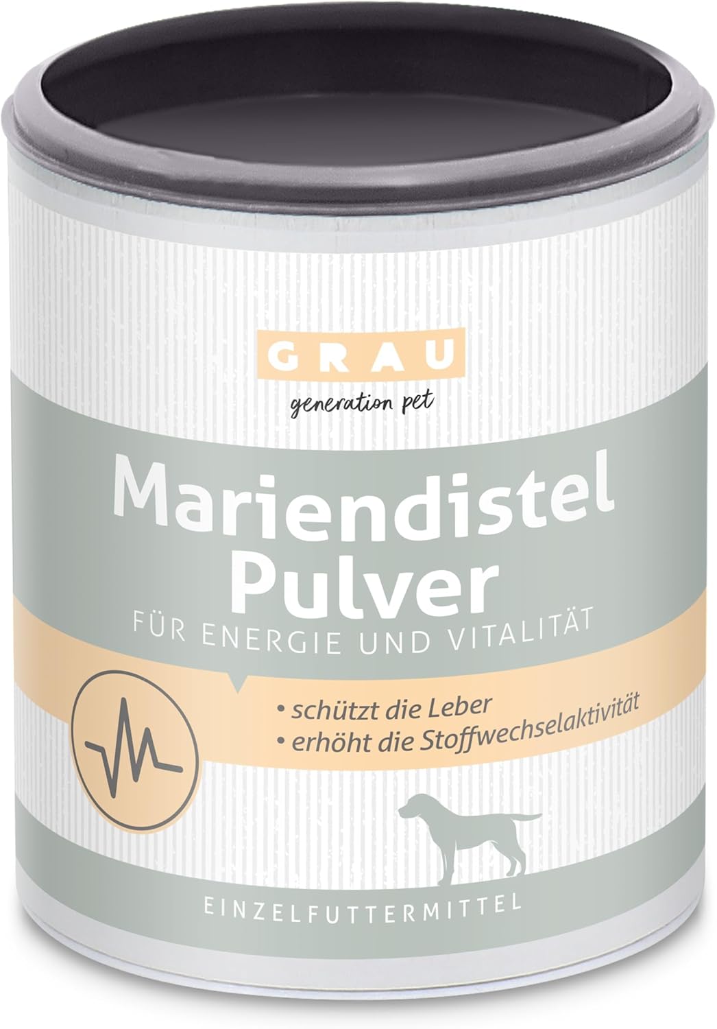 Фино смленият прах от семена на бял трън на GRAU защитава и поддържа черния дроб на вашето куче, жизненоважен орган за детоксикация, благодарение на естественото си съдържание на силимарин. Прахът от бял трън GRAU… - защитава черния дроб - стимулира жлъчния поток - повишава метаболитната активност - допринася за регенерацията на клетките. Състав: Смлени и обезмаслени семена от бял трън (100% Silybum marianum). Аналитични съставки: Суров протеин 19,6%, съдържание на мазнини 8,1%, сурова пепел 6,1%, сурови фибри 23,9%