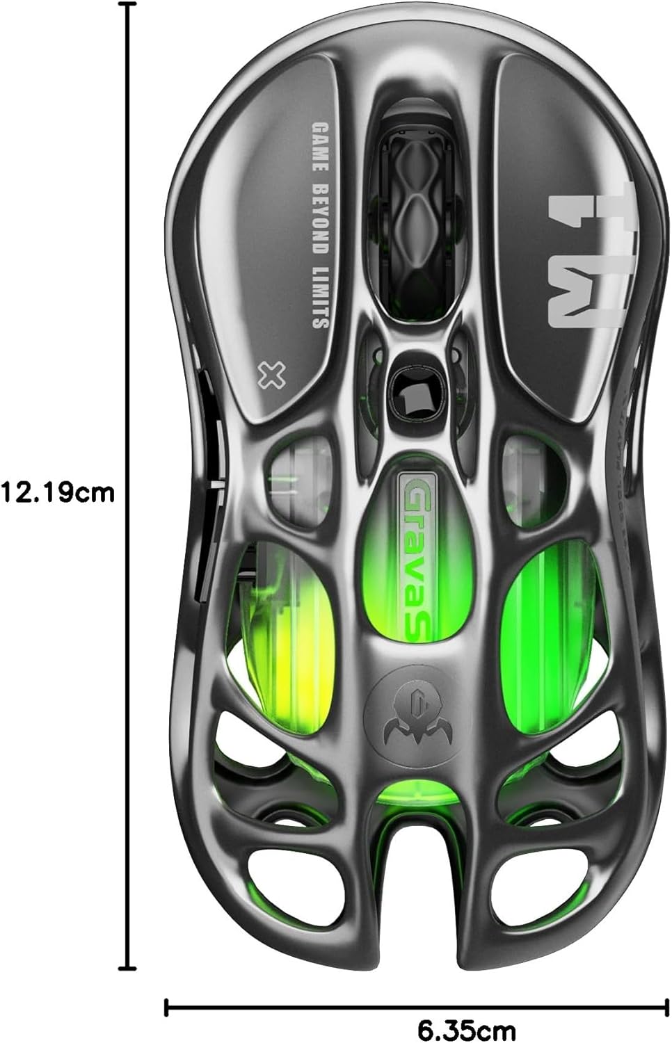 GravaStar Mercury M1 Pro Геймърска мишка безжична, 4K Hz суперлека геймърска мишка, изработена от магнезиева сплав, 26000 DPI, PAW3395 сензор, 5 програмируеми бутона, RGB, куха геймърска мишка - Gunmetal