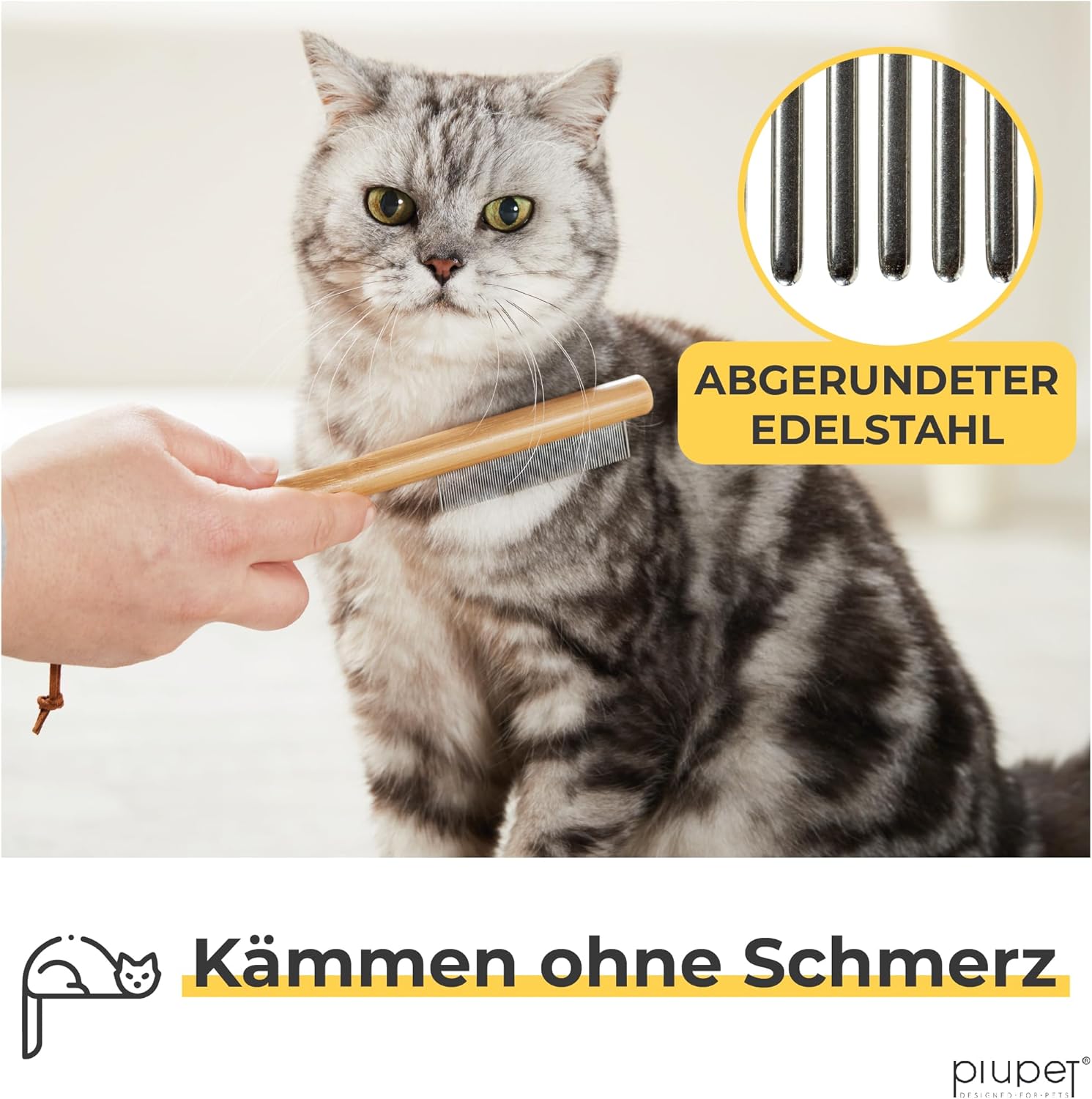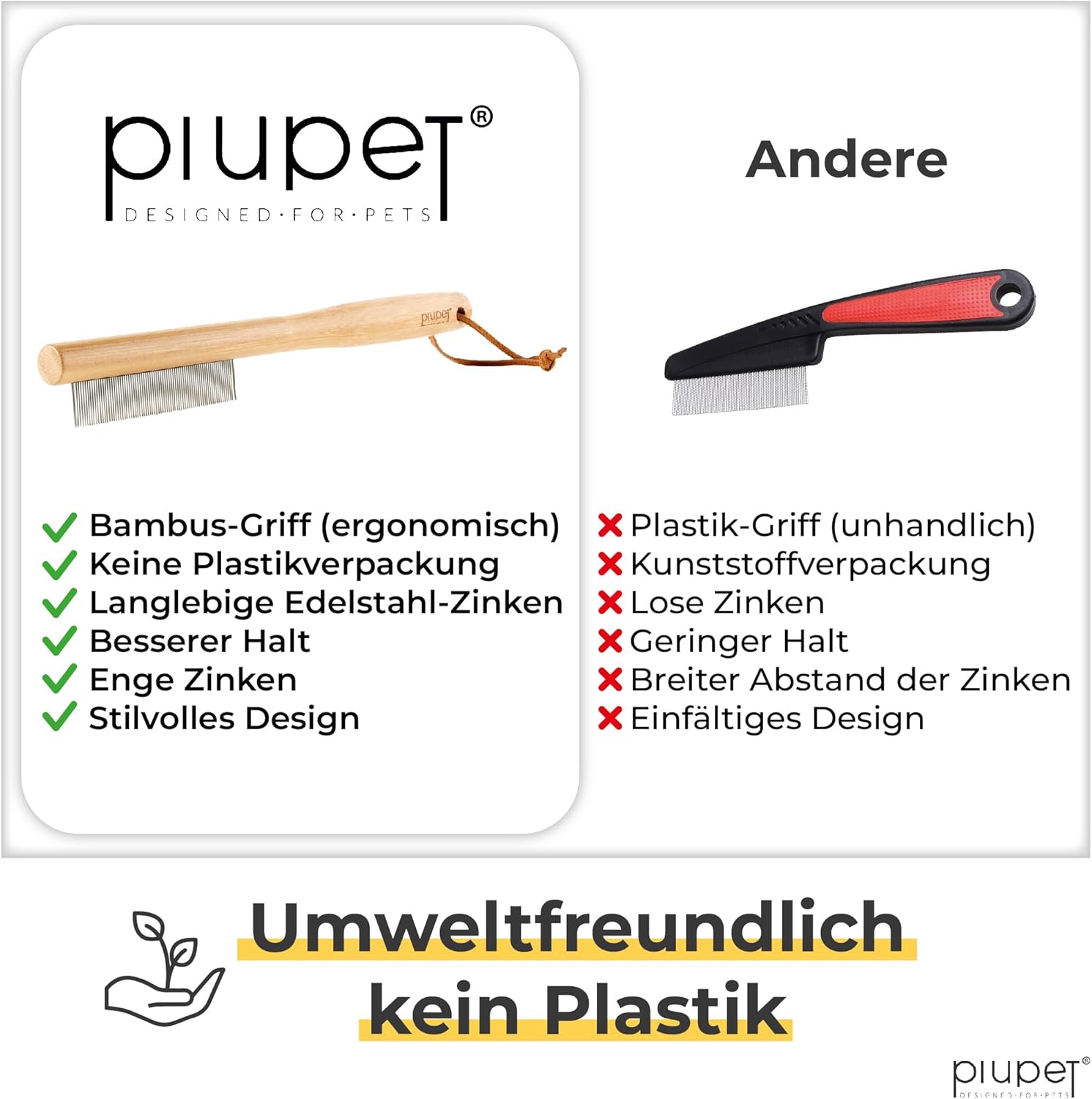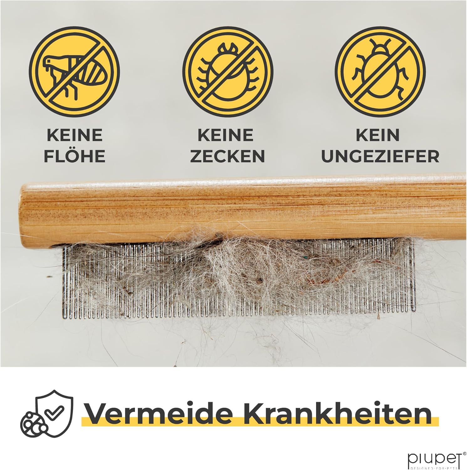 • ГЛЕЗЕТЕ ДОМАШНИЯ СИ ЛЮБИМЕЦ - Използвайте гребена за нишки не само за премахване на паразити, но и за да прекарате ценно време с вашия четириног приятел. Независимо дали като гребен за кучета за дълга козина, гребен за котки, гребен за бълхи за кучета, четка за бълхи за кучета, четка за бълхи за котки, гребен за кърлежи, гребен за въшки или гребен за кърлежи - този гребен е идеален за оптимална грижа за вашия домашен любимец. С гребена за бълхи за котки и гребена за бълхи за кучета PiuPet получавате здрава и по-екологична алтернатива на пластмасовия гребен за бълхи за котки и кучета.