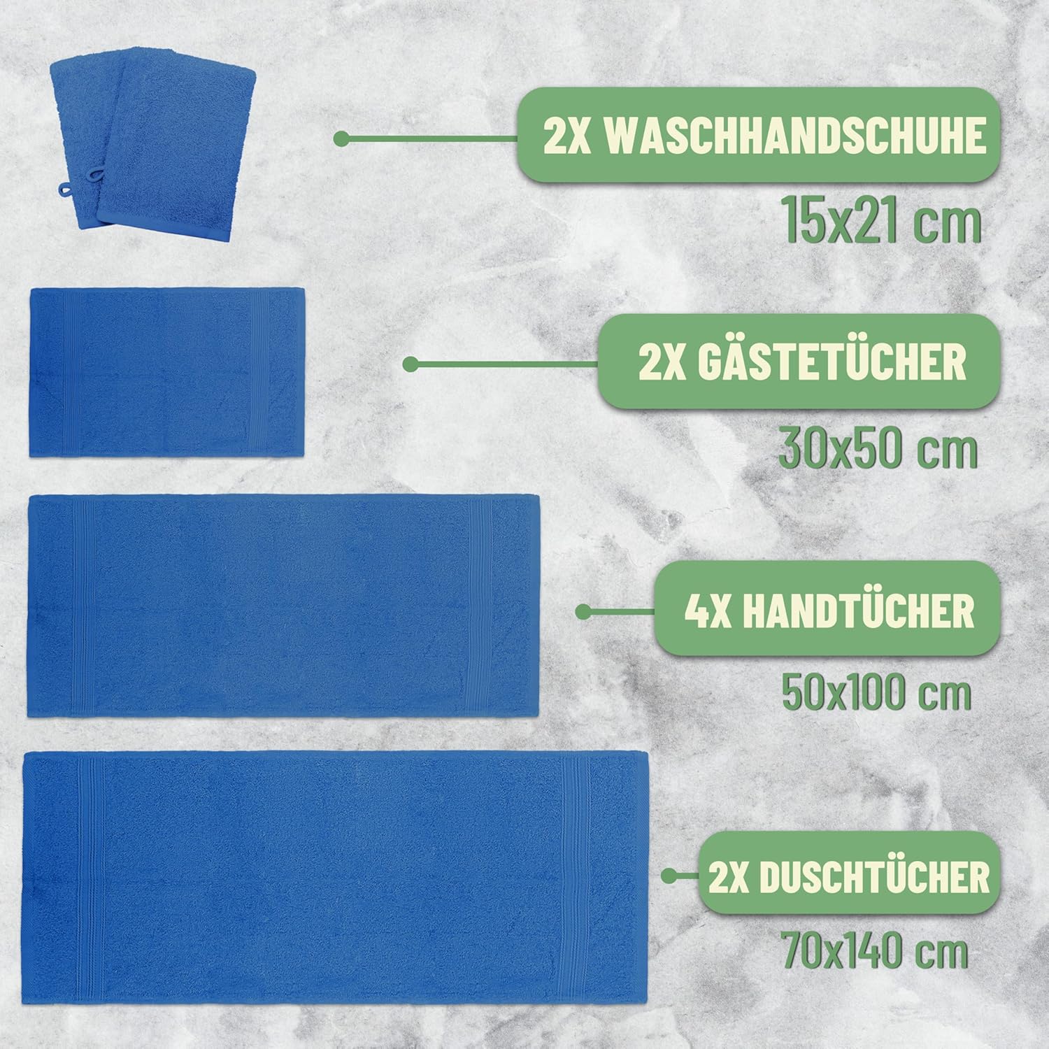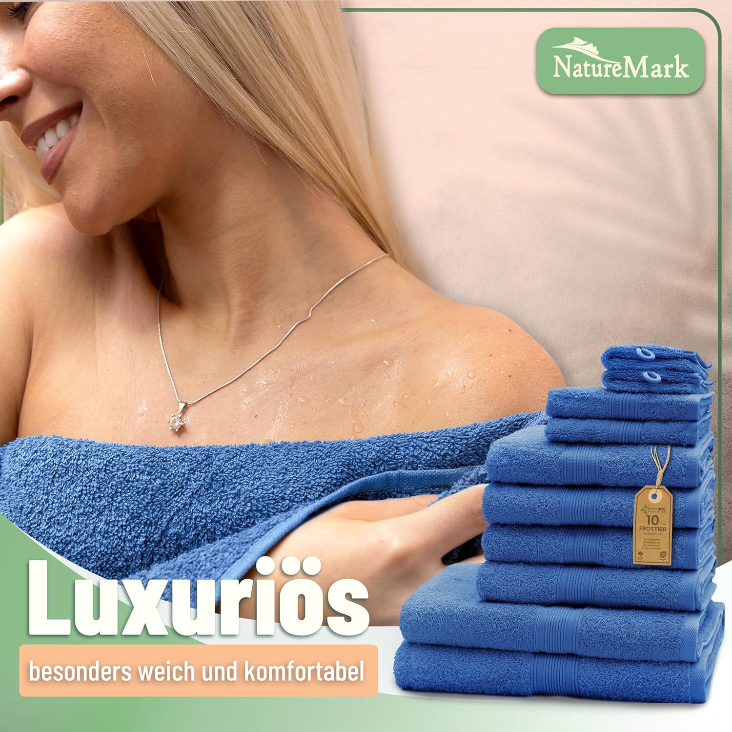 Green Mark textile, комплект от 10 хавлиени кърпи с различни размери: 4 кърпи за ръце, 2 кърпи за душ, 2 кърпи за гости, 2 ръкавици за миене - първокласно качество
