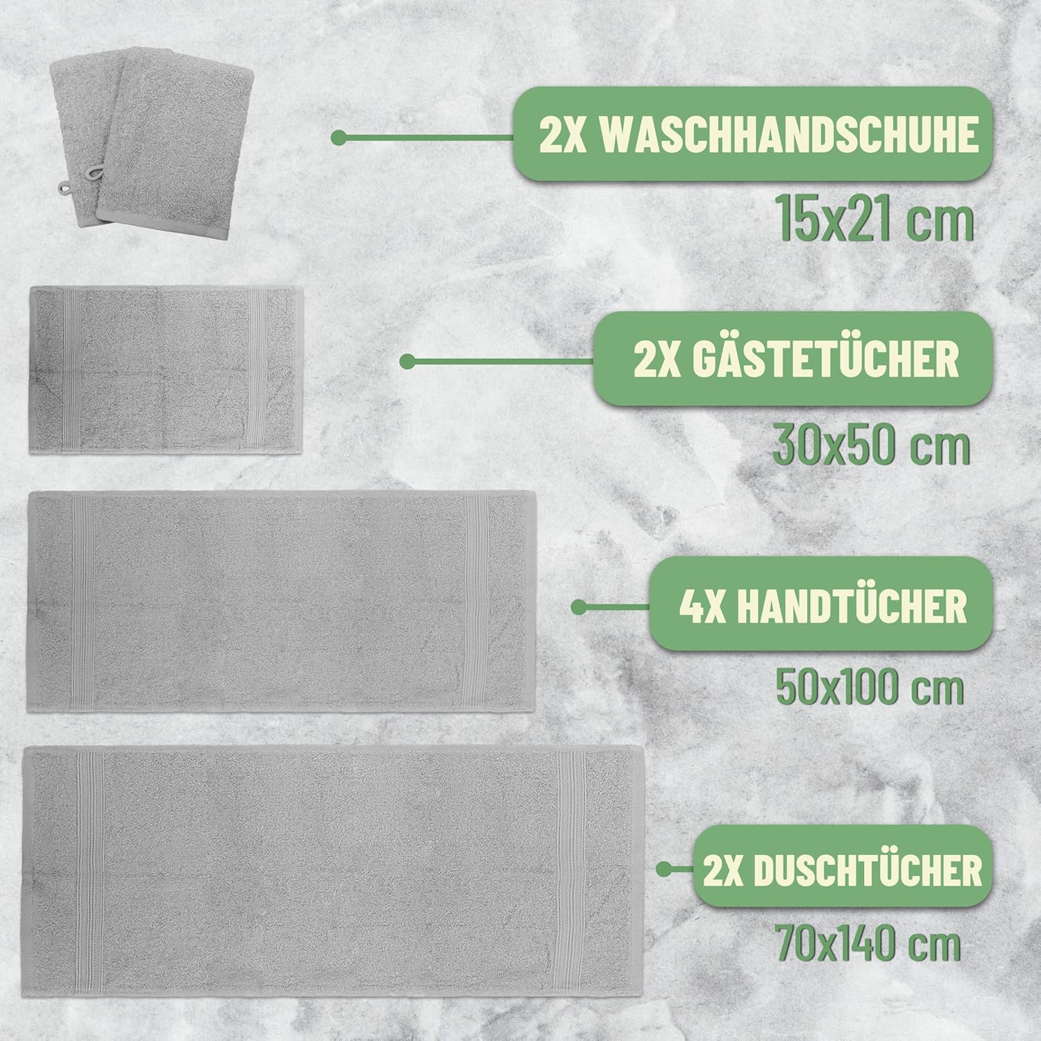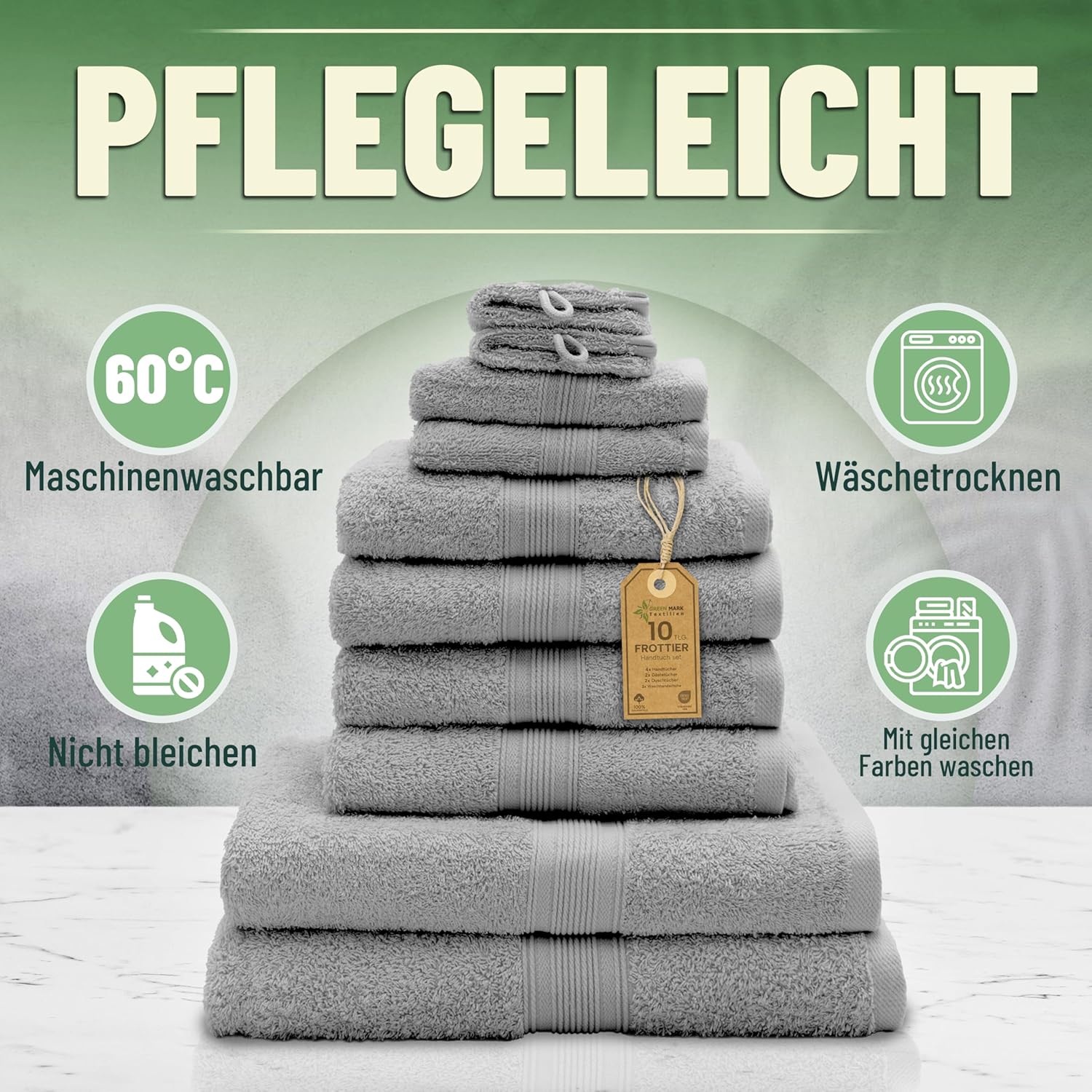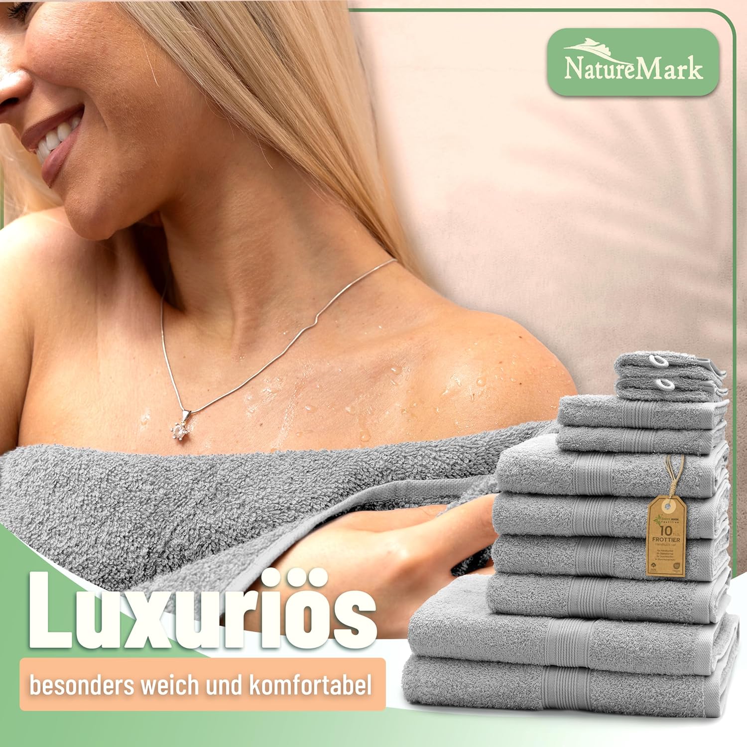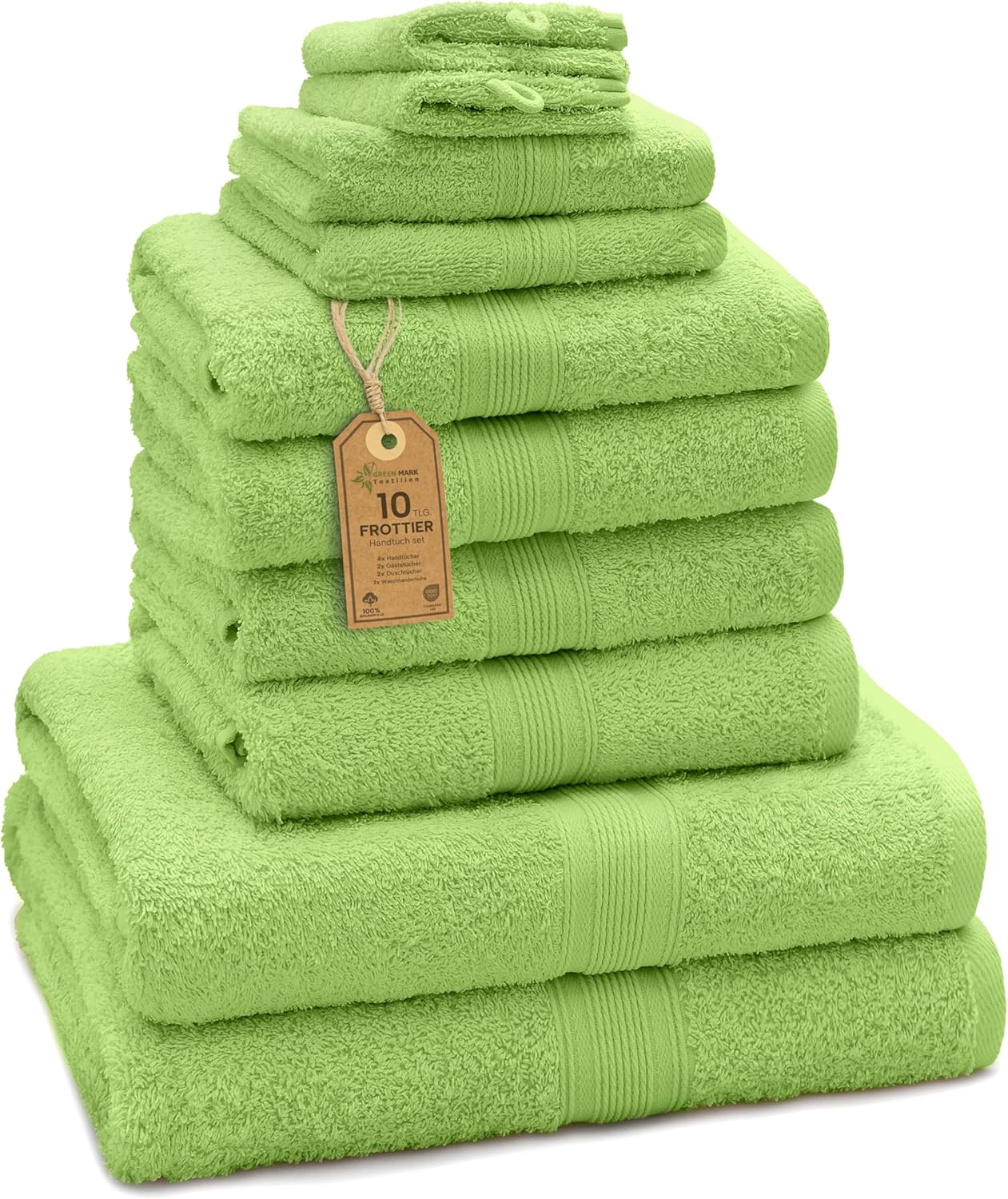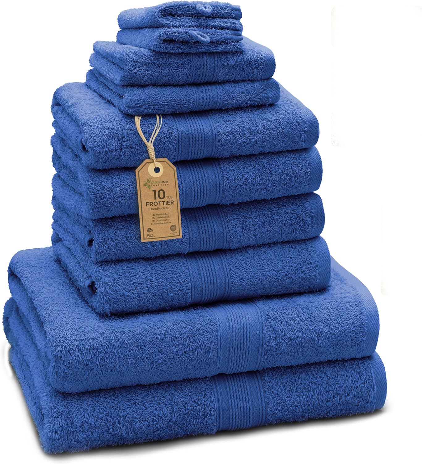 Green Mark textile, комплект от 10 хавлиени кърпи с различни размери: 4 кърпи за ръце, 2 кърпи за душ, 2 кърпи за гости, 2 ръкавици за миене - първокласно качество