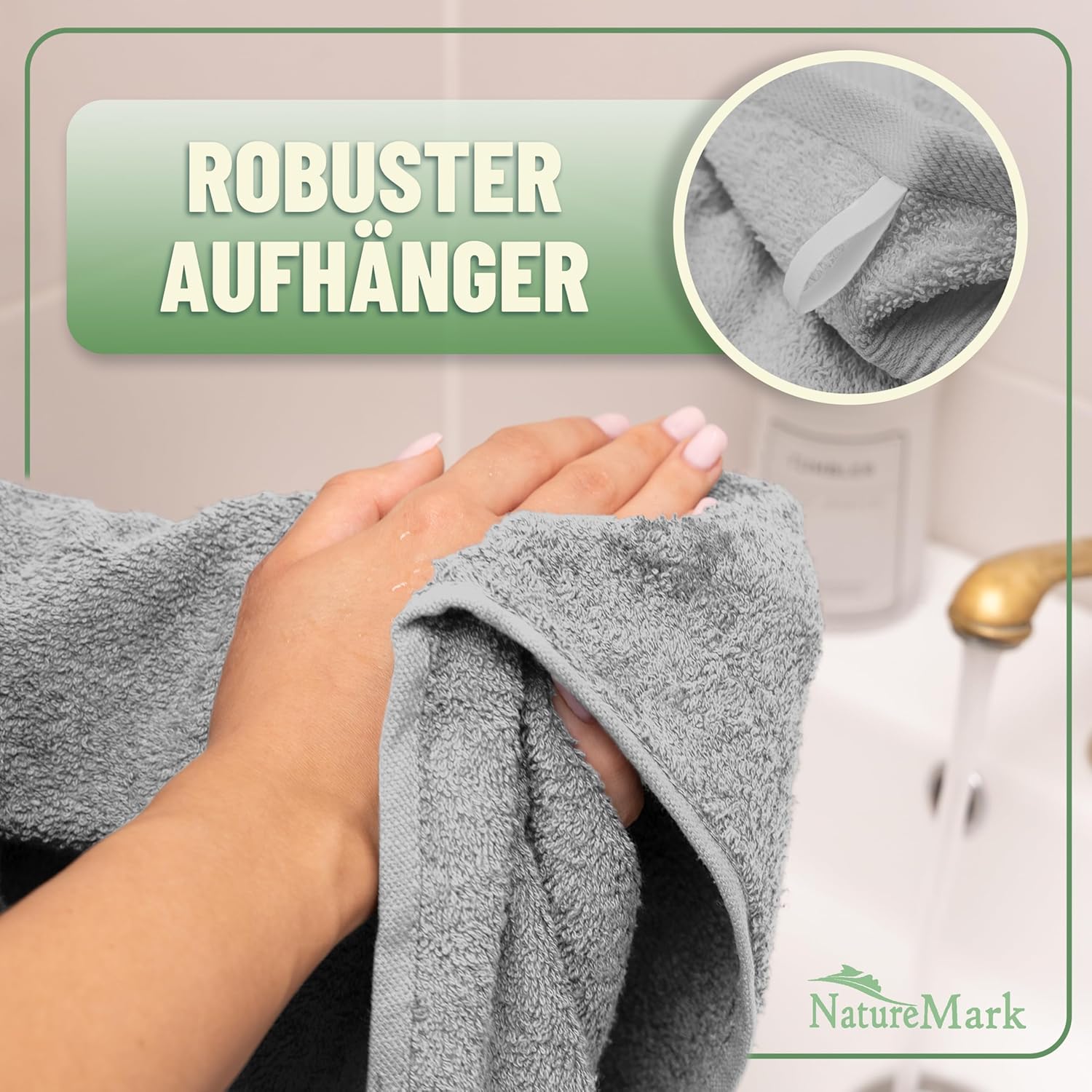 • Особено меки и приятни на допир хавлиени кърпи: качество 500 г/м², с практична халка за окачване.