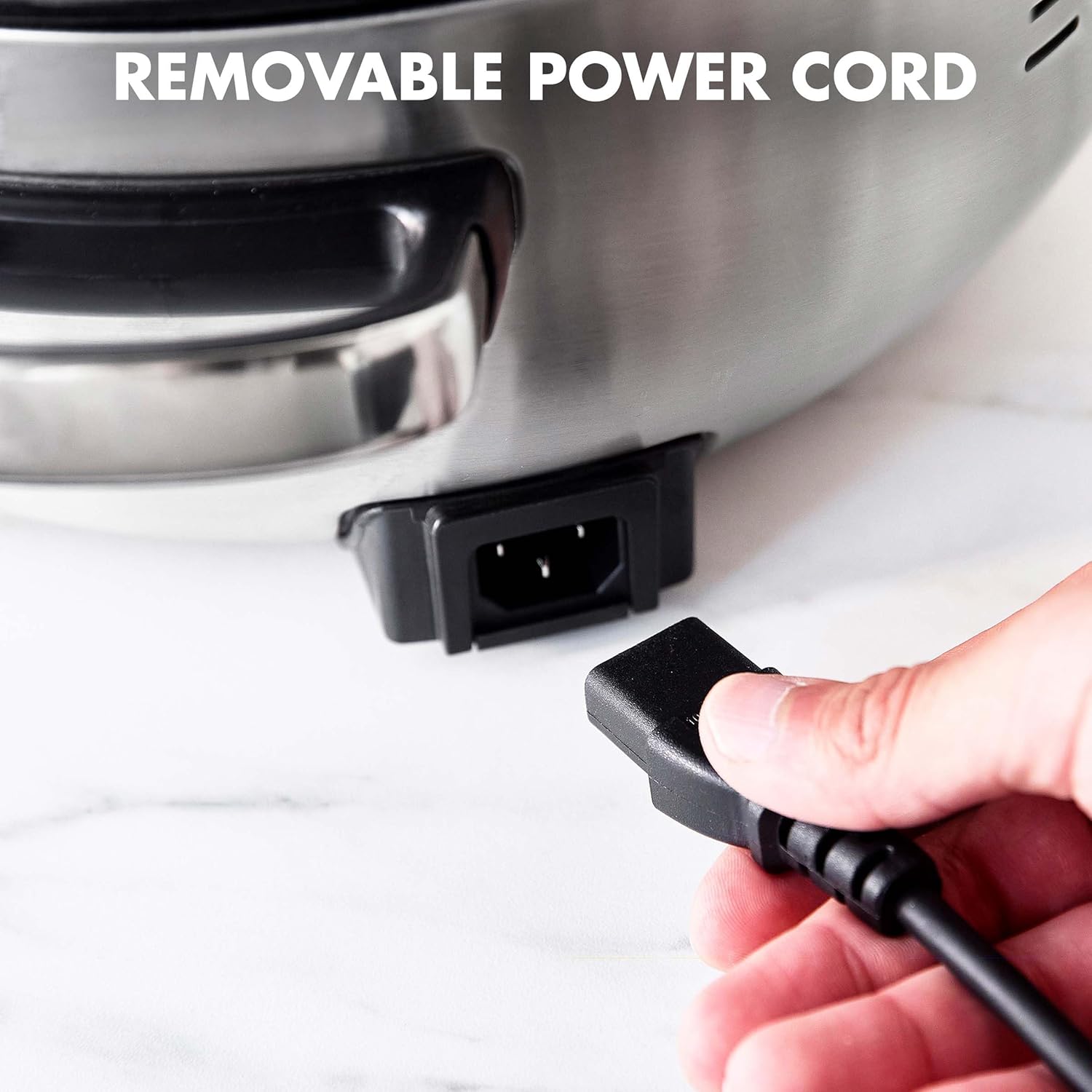 • ЛЕСНО ПРЕМЕСТВАНЕ И СЪХРАНЕНИЕ: силиконовите странични дръжки осигуряват комфорт при регулиране или преместване на тенджерата, а капакът за кабела се съхранява в удобен заден панел