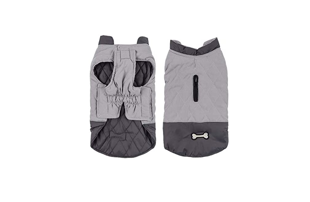 Грейка за кучета Idepet, Размер S, С отвор за повод, Водоотблъскващо покритие, Ветроустойчивост, Сива