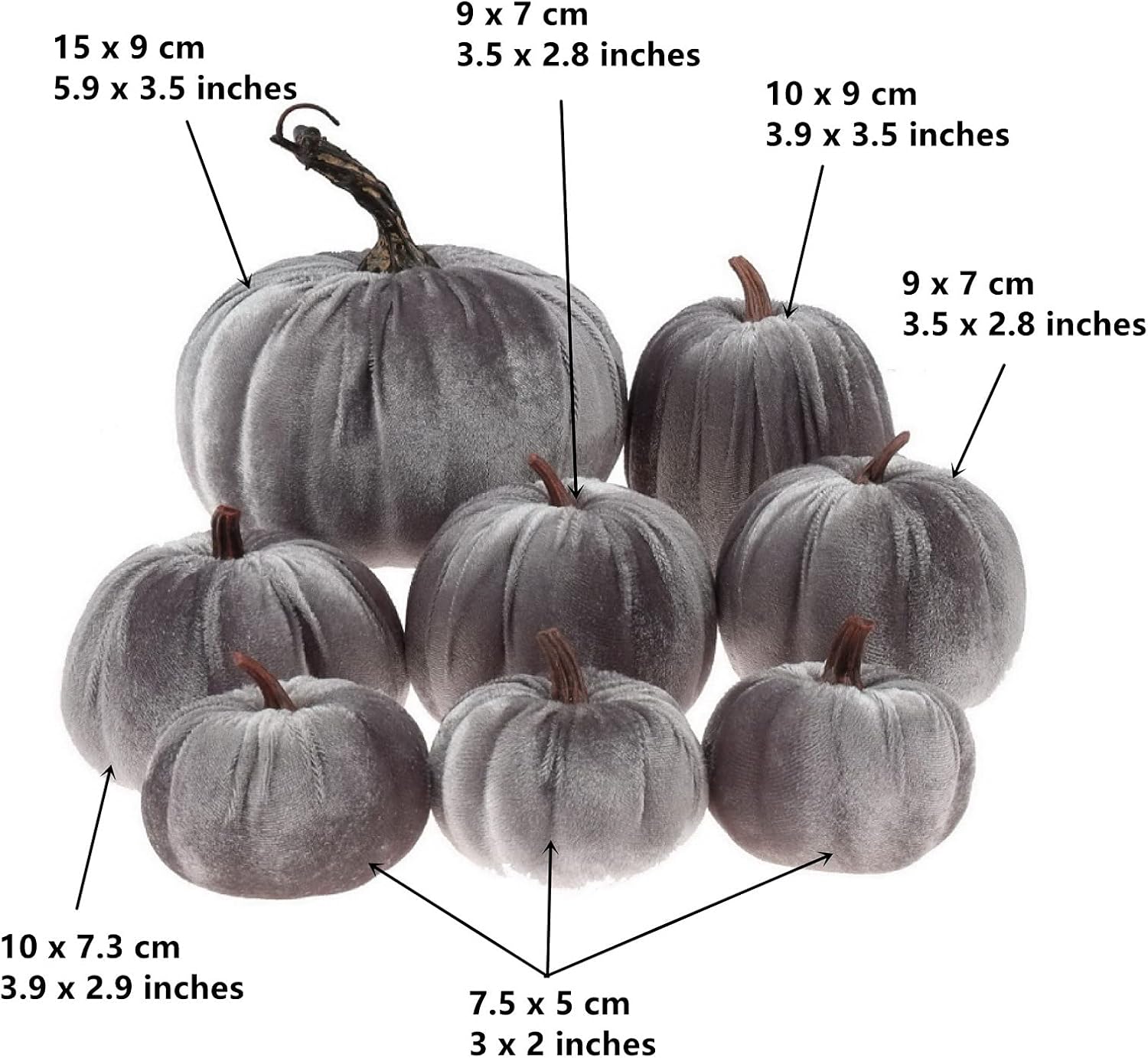 Пакетът съдържа 8 кожени тикви с различни размери: 1 x 5,9 инча, 1 x 3,9 инча, 3 x 3,5 инча, 3 x 3 инча.