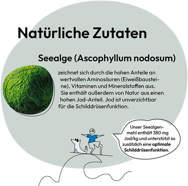 Брашното от водорасли GRAU се извлича от водораслите Ascophyllum nodosum и е висококачествен натурален продукт без никакви добавки, който подпомага пигментацията на козината. Съдържа висок процент ценни аминокиселини, витамини, минерали и йод. Брашното от водорасли GRAU… - подобрява индивидуалния, специфичен за породата цвят на козината чрез своите естествени съставки - поддържа цялата естествена пигментация на вашия четириног приятел – от бяло до черно, а също и трицветно - осигурява гъста, лъскава козина - подпомага оптималната функция на щитовидната жлеза благодарение на високото си съдържание на йод. Полезно е да знаете: Брашното от водорасли GRAU съдържа 380 мг йод/кг. Състав: сушени пресни водорасли (Ascophyllum nodosum). Аналитични съставки: суров протеин 6,8%, съдържание на мазнини 3,2%, сурови фибри 8,2%, сурова пепел 24,8%, влага 8,9%