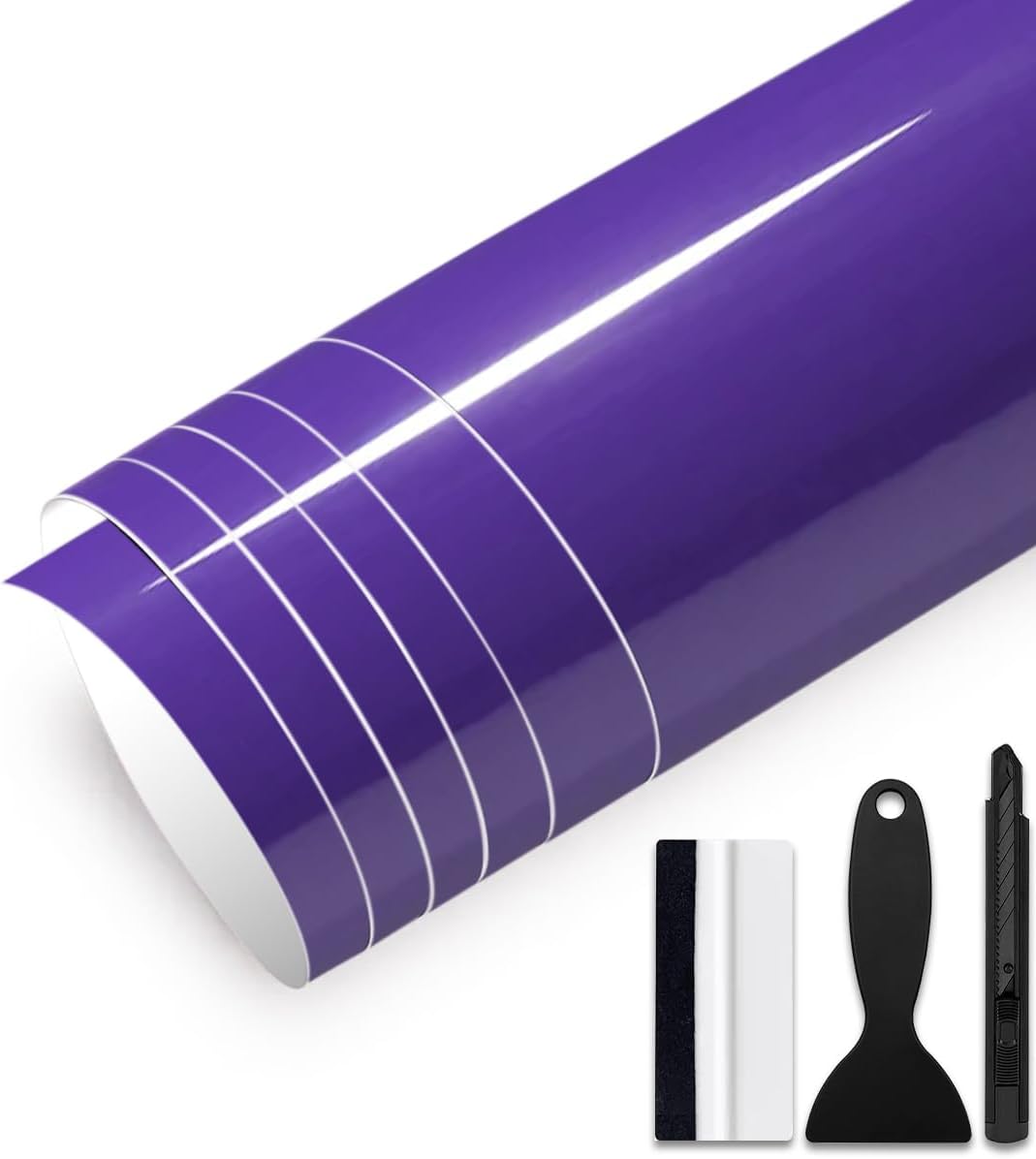 GRTHTATI 30см x 150см гланцово фолио за автомобилно опаковане, самозалепващо фолио за автомобилно опаковане с въздушни канали, фолио без мехурчета за мотоциклети, велосипеди, „Направи си сам“ (лилав гланц, 30см x 150см)