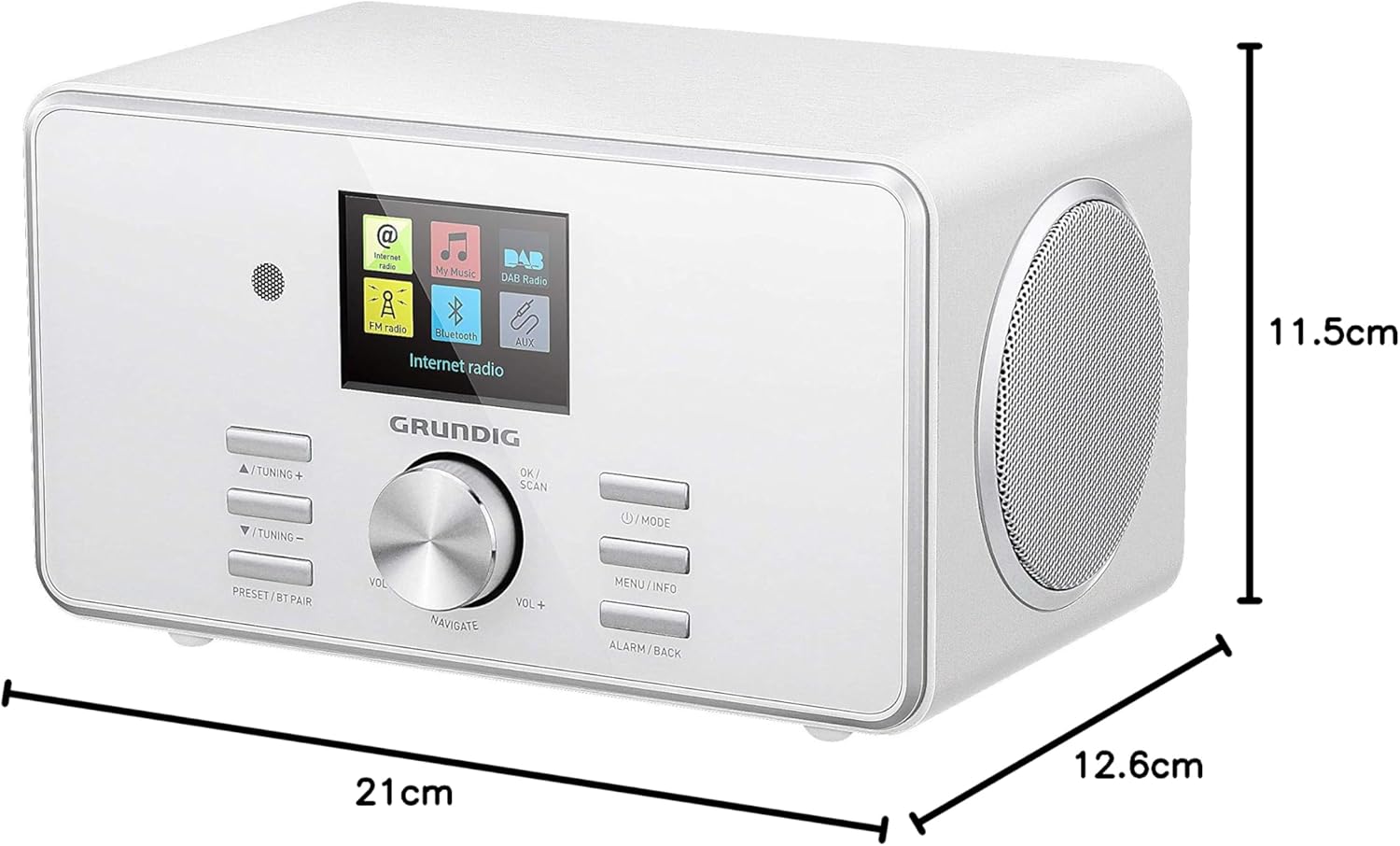 Това модерно цифрово радио съчетава най-съвременна технология за приемане (DAB+/FM тунер, памет за 40 станции) с изпълващ стаята и балансиран звуков изход, генериран от 2.0 стерео високоговорител с богата RMS изходна мощност от 10W. Разбира се, можете също да стриймвате личната си програма чрез Bluetooth от вашия смартфон или компютър. Освен това, вашето радио може да се използва и като будилник (с двоен будилник и таймер за заспиване). Лесното и интуитивно управление се осигурява от големия 2,4-инчов TFT цветен дисплей, чиято яркост може да се регулира на три нива. Допълнително удобство включва изход за слушалки и дистанционно управление.