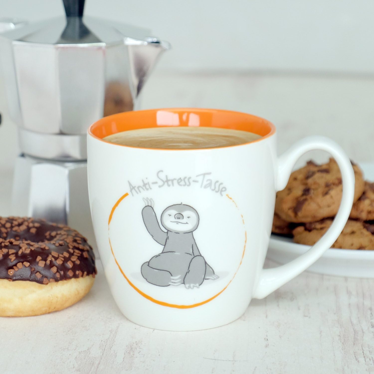 GRUSS & CO Антистресова чаша с дизайн "Ленивец" | Кафена чаша с надпис, 45 cl, Нов костен порцелан | Подаръчна чаша | 45514