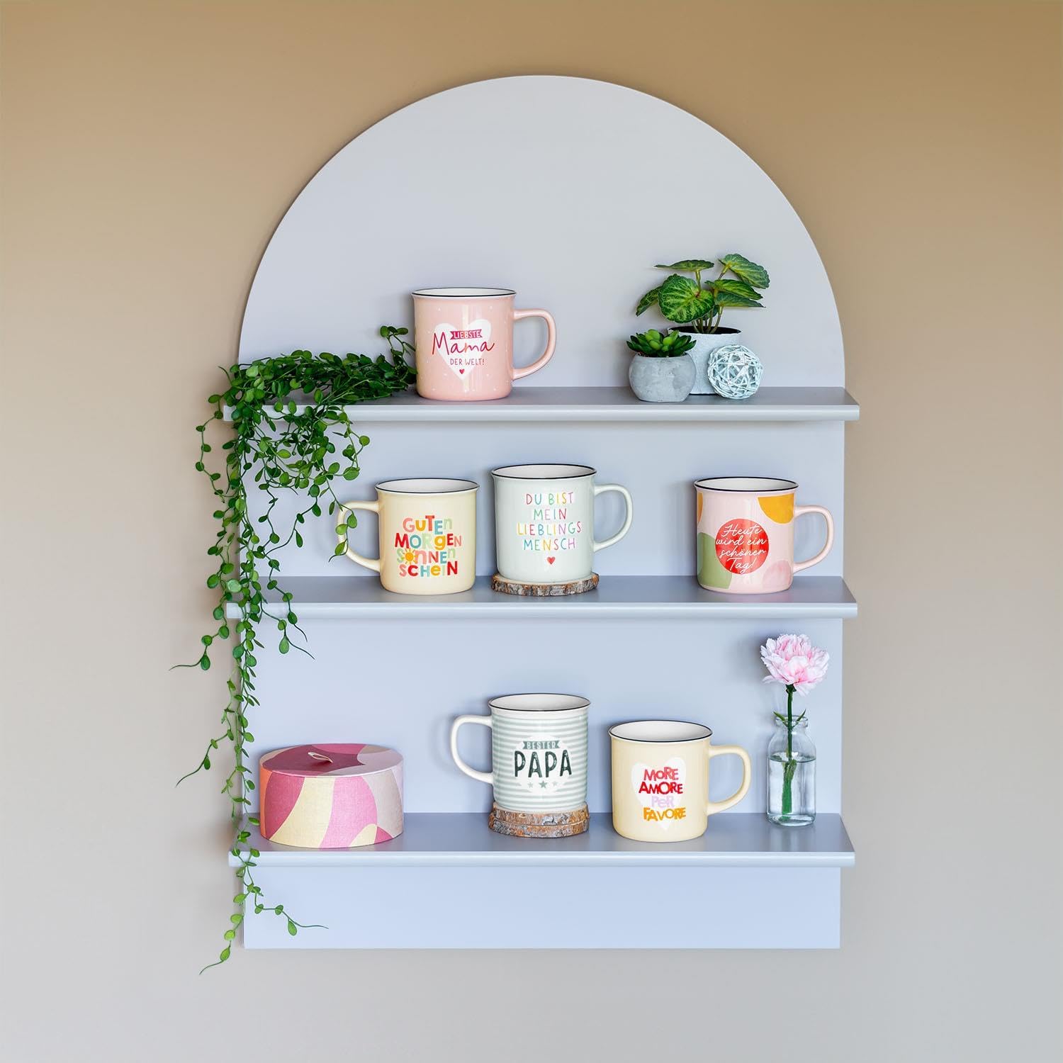 • XL ЧАША С НАДПИС: Голяма чаша, чаша за кафе или чай, изработена от порцелан с цветна мотивна декорация и надпис „Хубаво е, че съществуваш“, обем 55 cl (подходяща за количество от около 50 cl), диаметър 10,2 см, височина 10,5 см, чаша с емайлирана визия и черен ръб, опакована в подходящо оформена подаръчна лента.