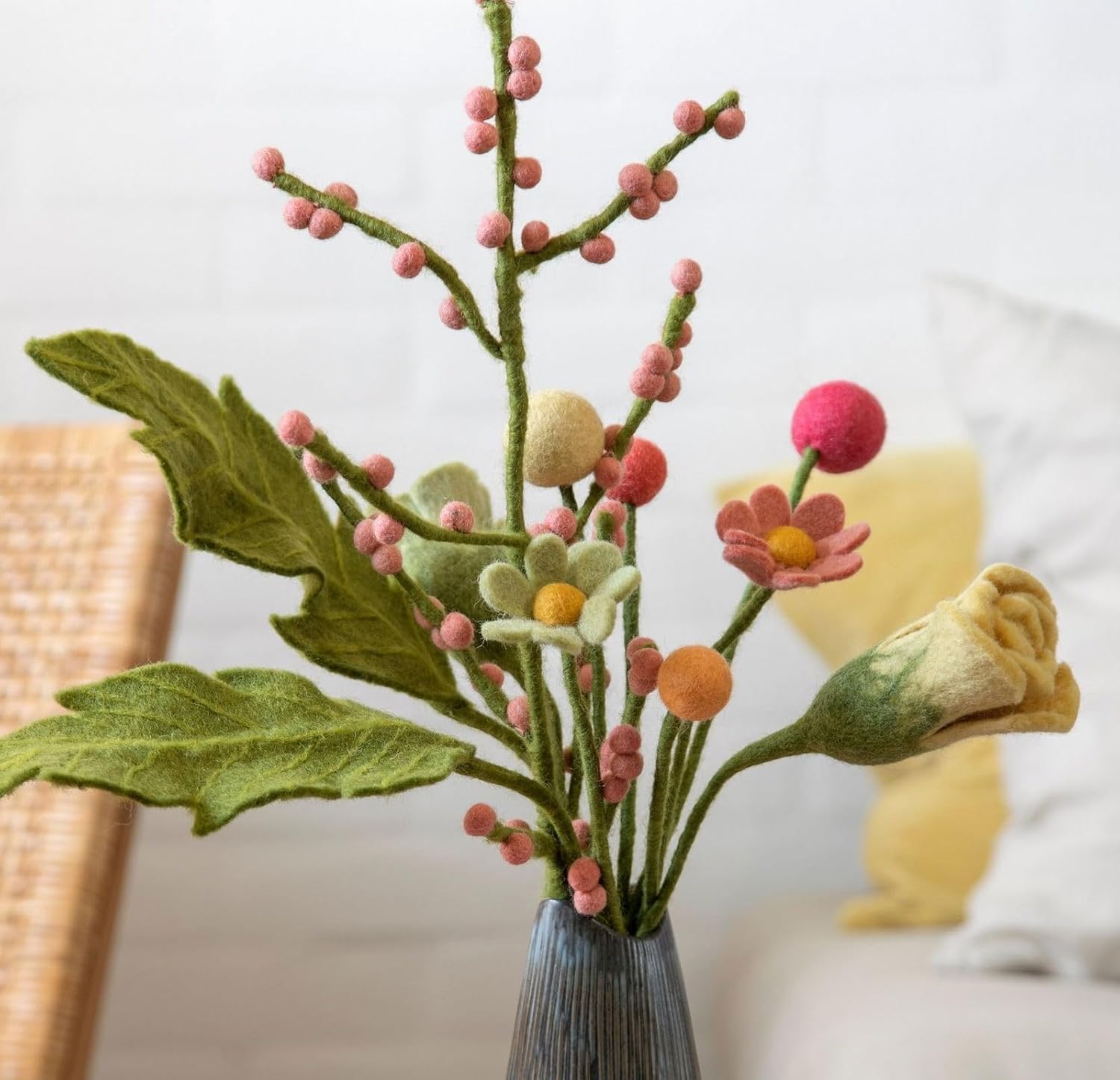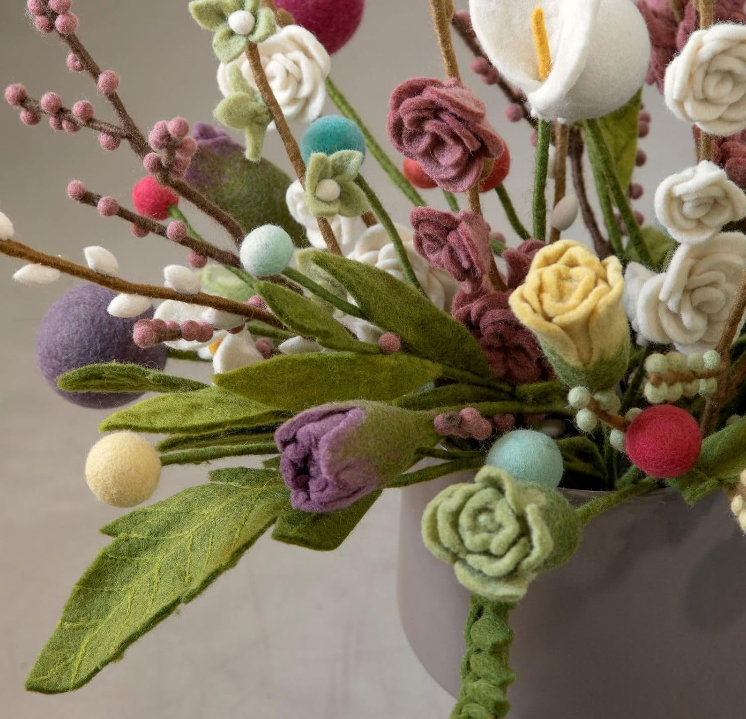 Тези красиви клонки могат да се използват за създаване на страхотни декоративни акценти. Вечни, устойчиви и просто красиви. Във ваза с чудесен медальон, изработен от филц, всичко е най-добре завършено. Продуктите на Gry & Sif са ръчно изработени в Непал от новозеландска вълна, при справедливи условия на труд. Gry & Sif подкрепя непалските жени да си осигуряват прехраната.