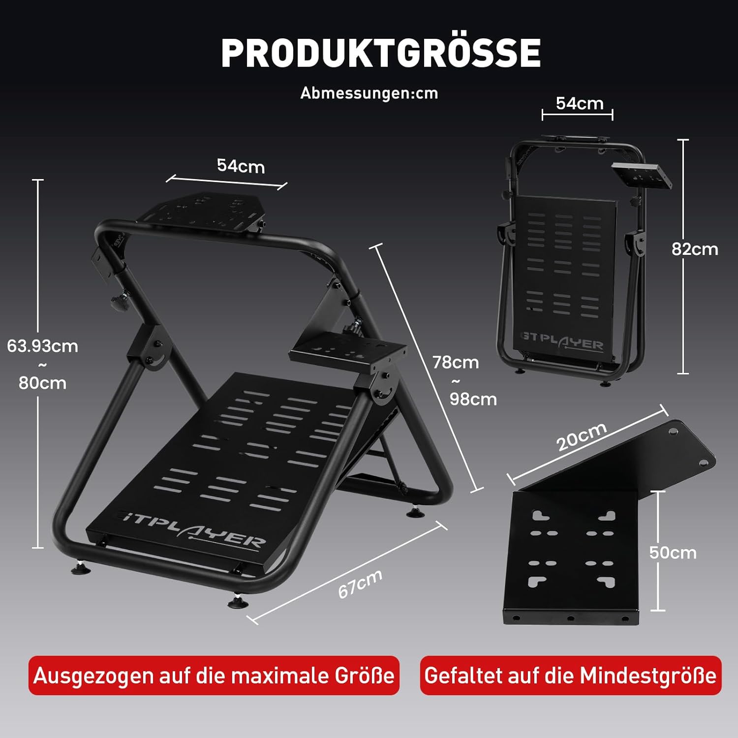 • Метална стойка за волан. Издръжлива: Тази стойка за волан е изработена от високоякостна въглеродна стомана, за да осигури максимална стабилност и здравина дори при продължителна употреба. Няма да има забележимо клатушкане, дори ако се впуснете в по-интензивни състезания.