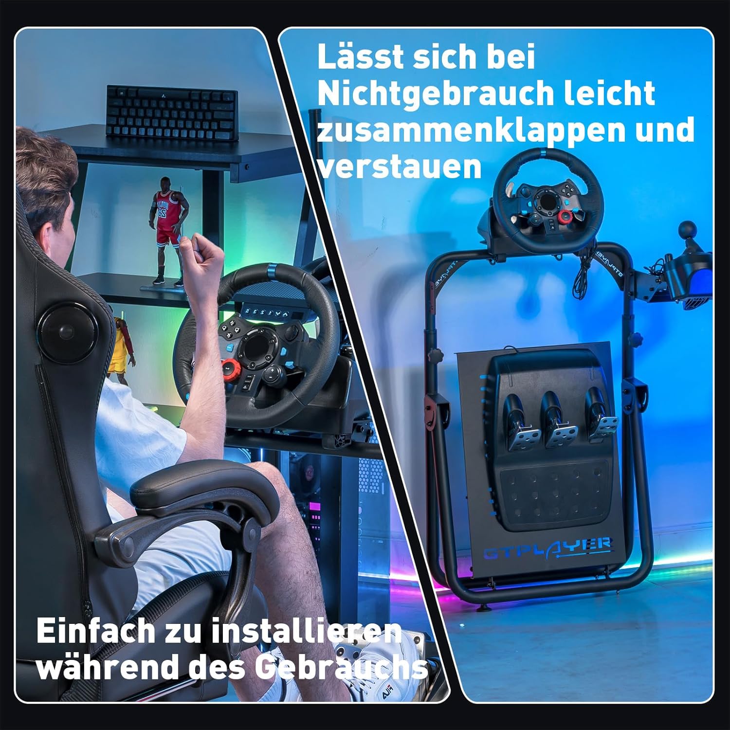 • Сгъваем държач за волан: когато играта приключи, можете лесно да сгънете този държач за състезателен волан и да го приберете под дивана/леглото или в ъгъла - идеален за играчи с малко място за съхранение.