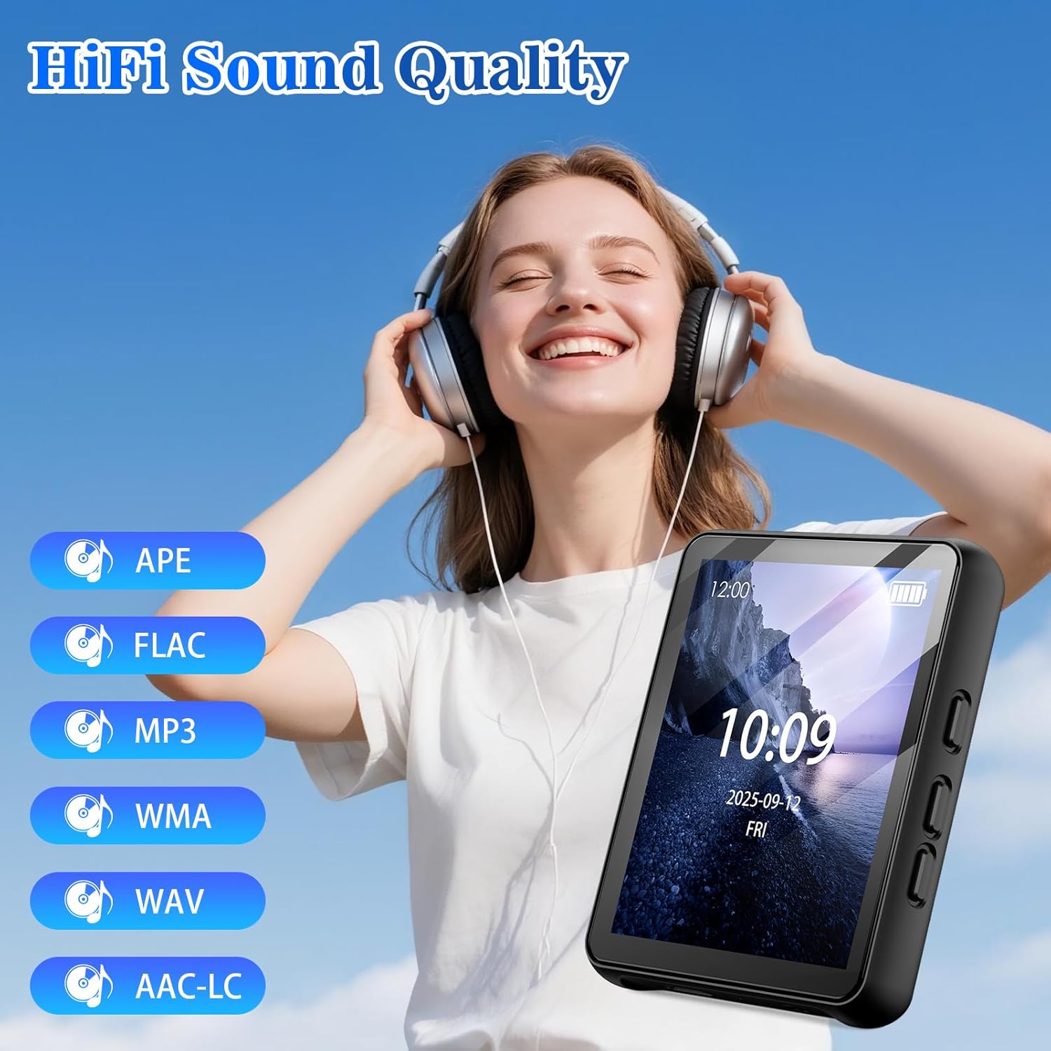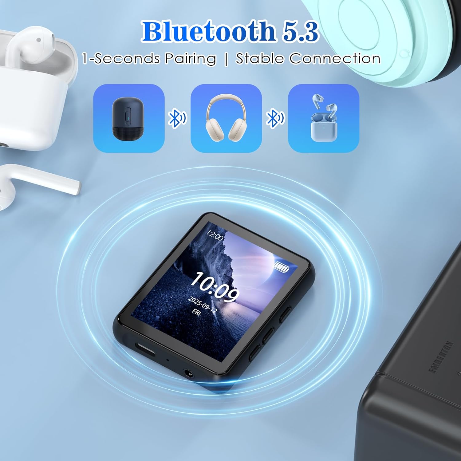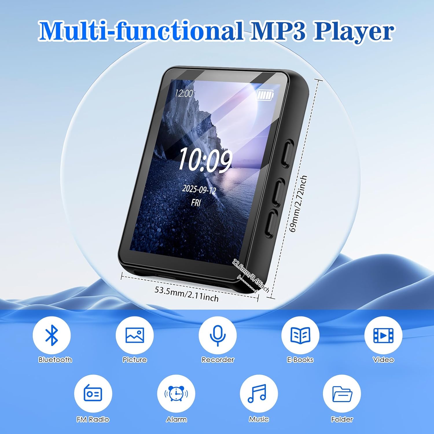 Discover the essence of music portability and sound quality with the Gueray MP3 player. It's not just an audio device; it's your personal recording studio to accompany you on every adventure. Enjoy the freedom of large storage space, the convenience of Bluetooth 5.3 and the clarity of hi-fi sound. Whether you're working out, commuting or just relaxing, this MP3 player is designed to take your listening experience to a new level. Enjoy your favorite tracks, record life's moments or catch up on books with this all-in-one audio companion.