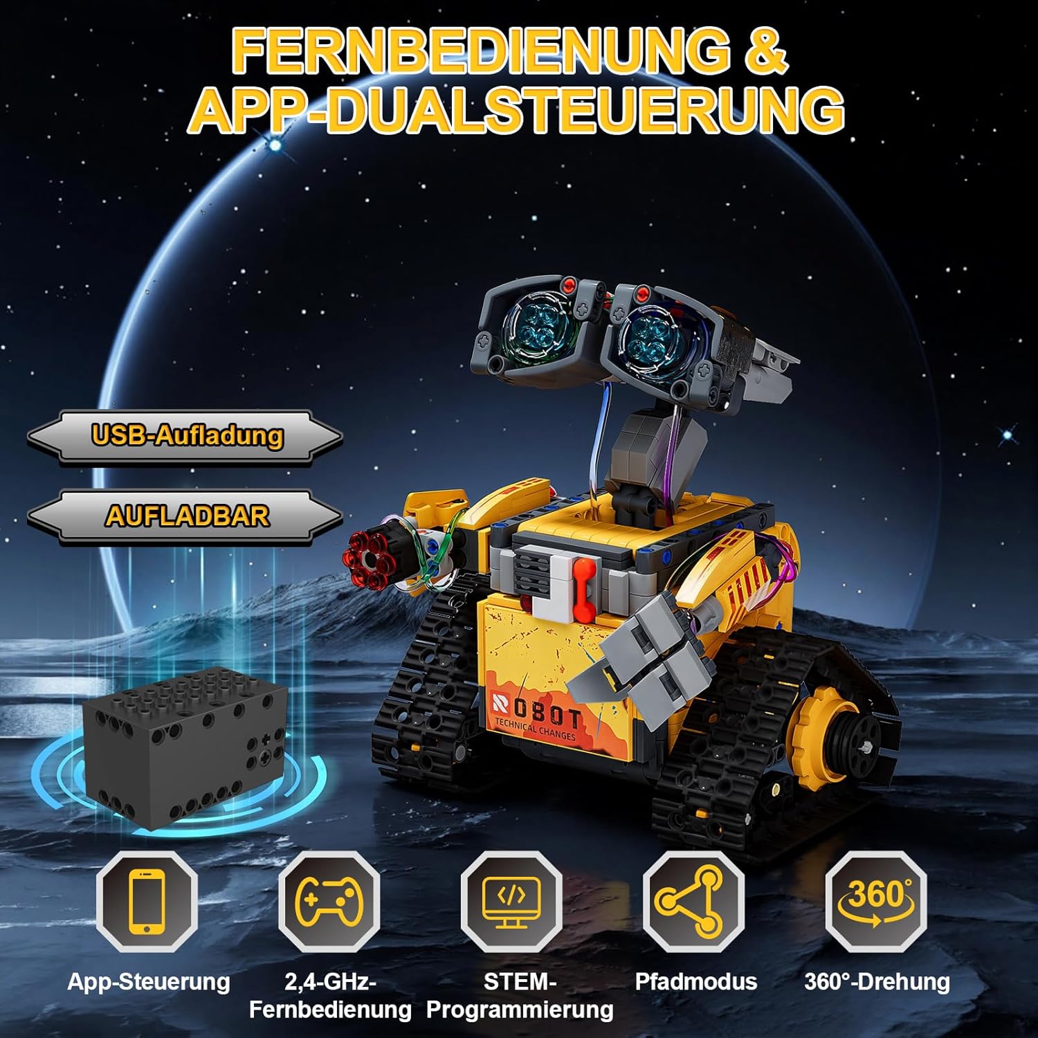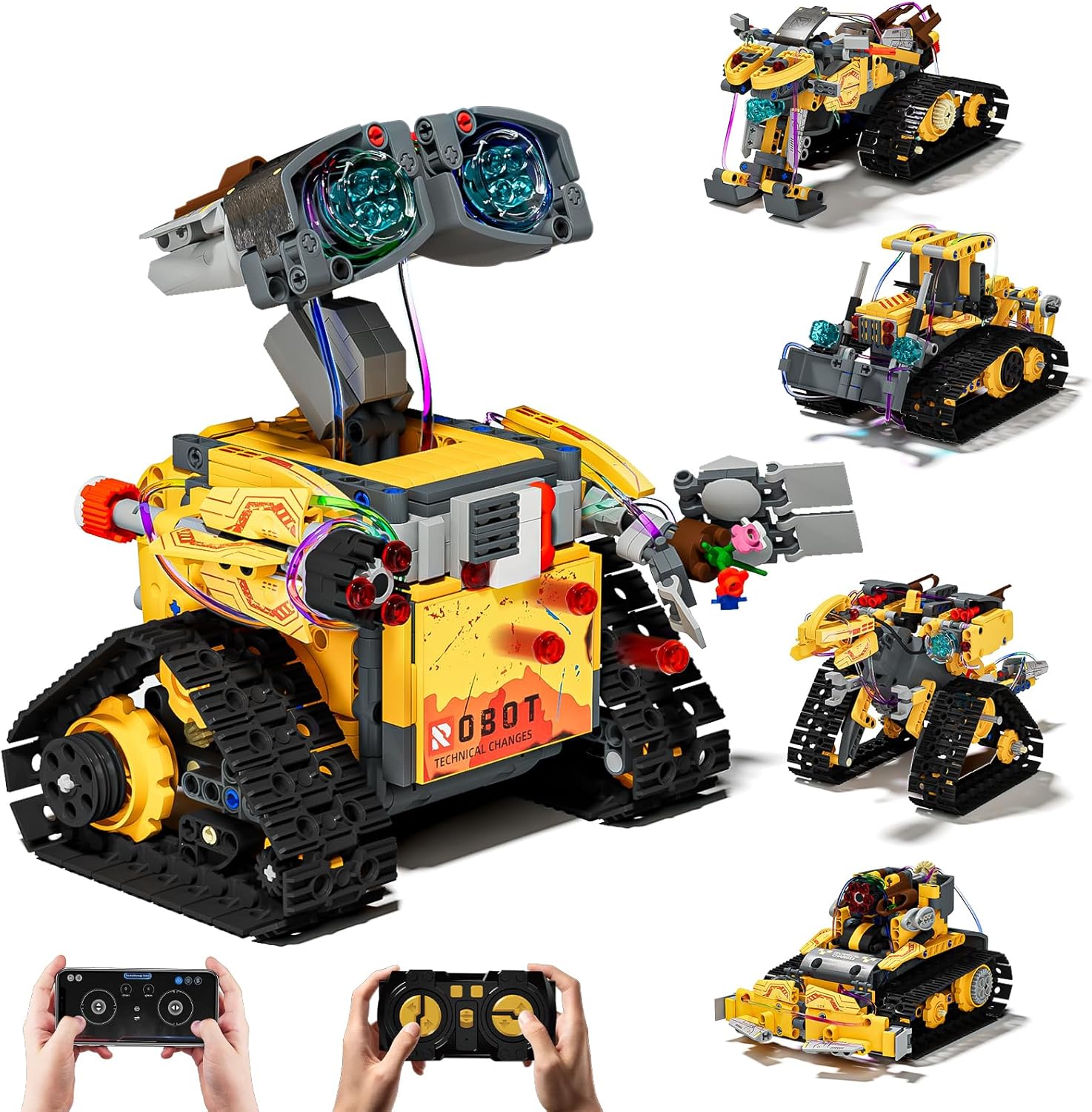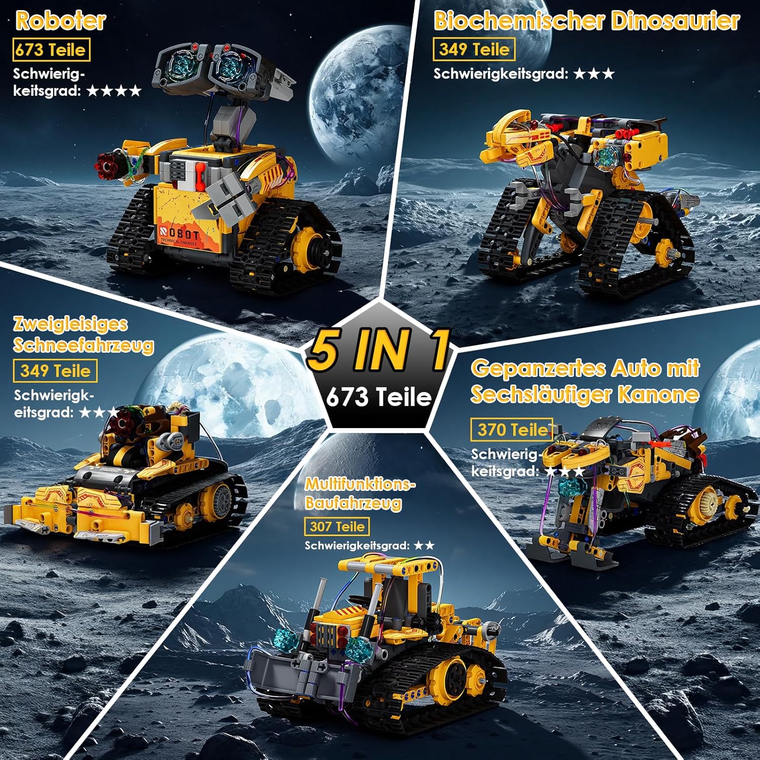 GuKKK Робот Деца за Момчета, 5-в-1 Роботизиран Комплект с Дистанционно Управление чрез Приложение, Стенен/Технологичен Робот/Мех Динозавър, Програмируема Конструктор Играчка
