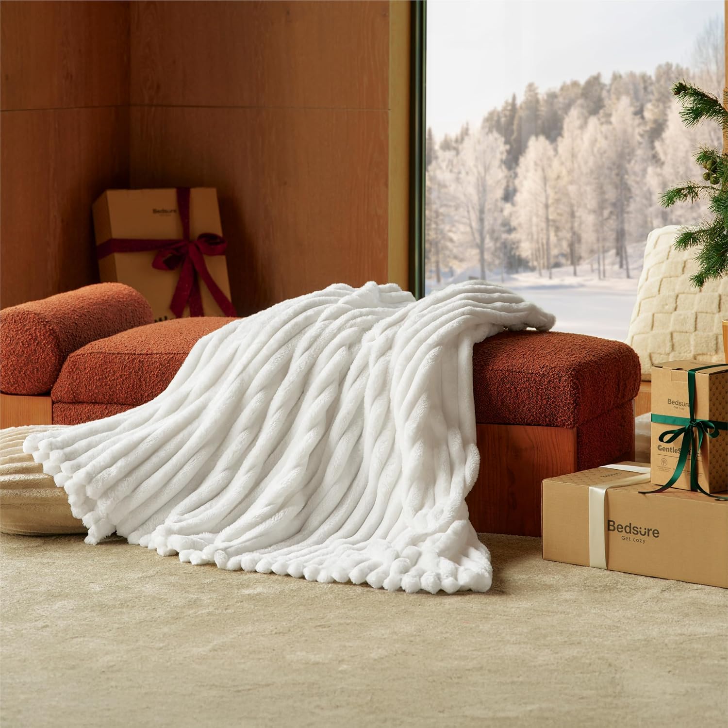 Гулено одеяло BEDSURE - Вълнено одеяло и поларено одеяло, Одеяло за диван, Меко топло одеяло с дебел шнур за декорация на стая, Одеяла за хол и пухкави одеяла, Кувертюра за легло, Вълнено бяло, 150 x 200 см