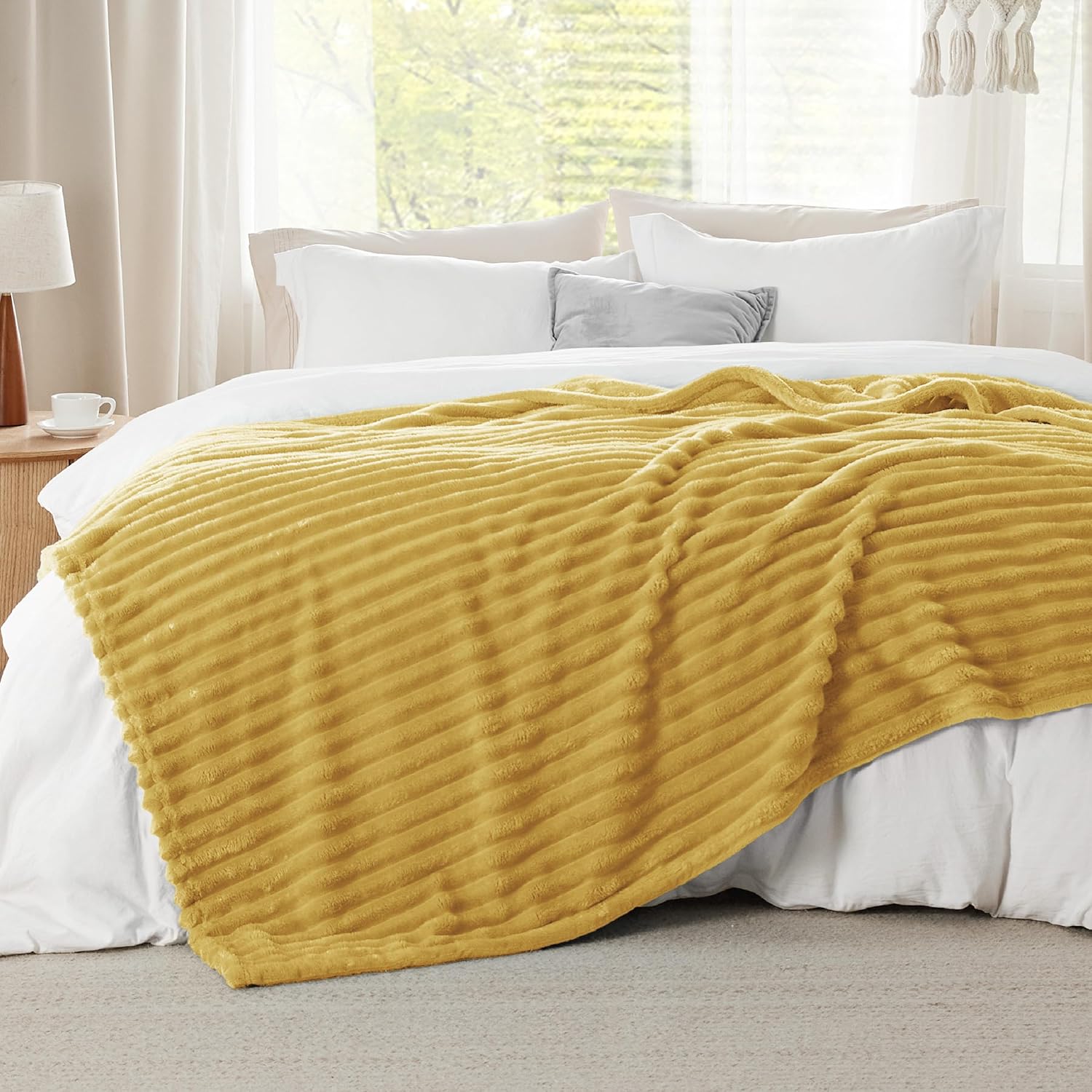 Гулено одеяло BEDSURE 220 x 240 см - Кувертюра за легло, Вълнено одеяло и поларено одеяло, Одеяло за диван, Меко топло одеяло с дебел шнур за декорация на стая, Одеяла за хол и пухкави одеяла, XXL голямо одеяло, Жълто