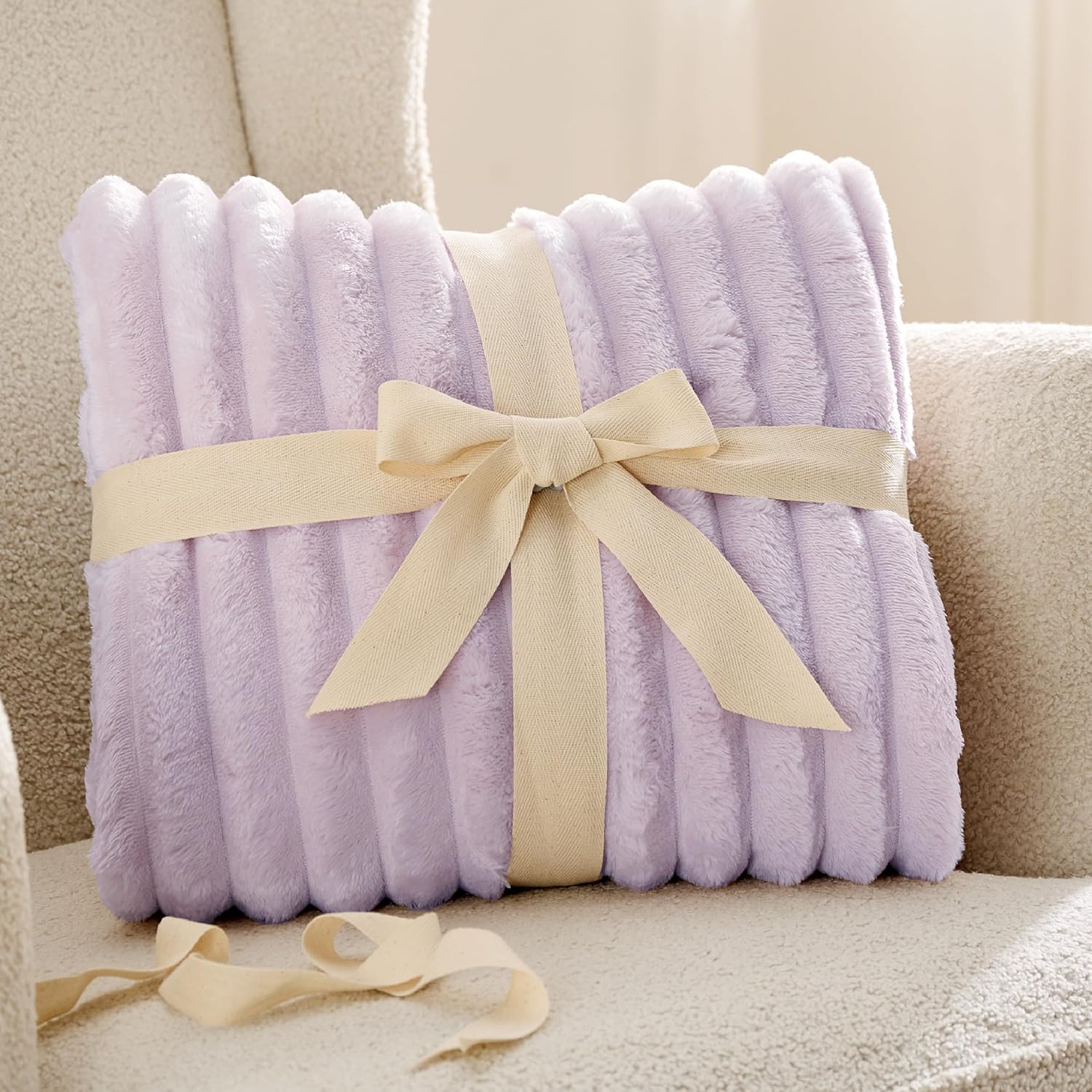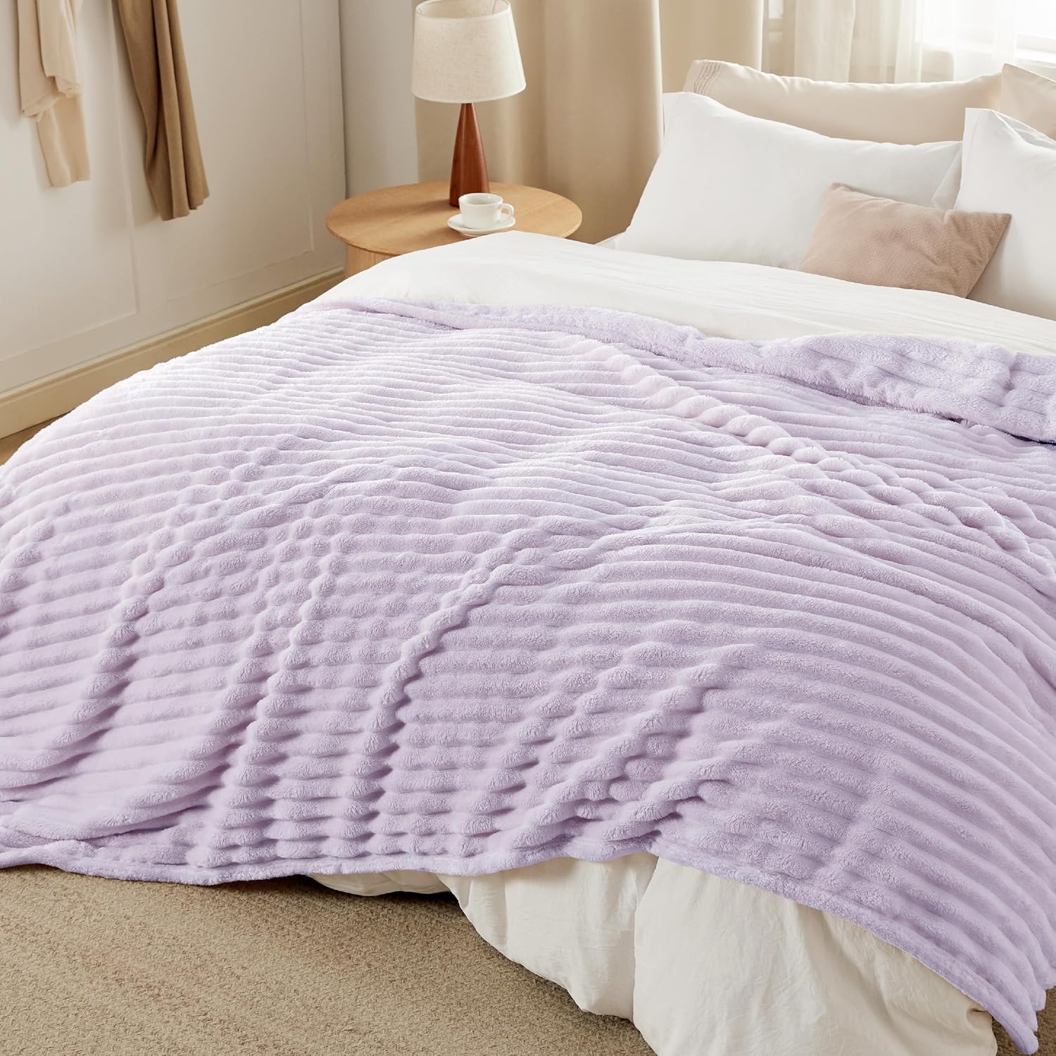 Гулено одеяло BEDSURE 220 x 240 см - Кувертюра за легло, Вълнено одеяло и поларено одеяло, Одеяло за диван, Меко топло одеяло с дебел шнур за декорация на стая, Одеяла за хол и пухкави одеяла, XXL голямо одеяло, Лавандула,