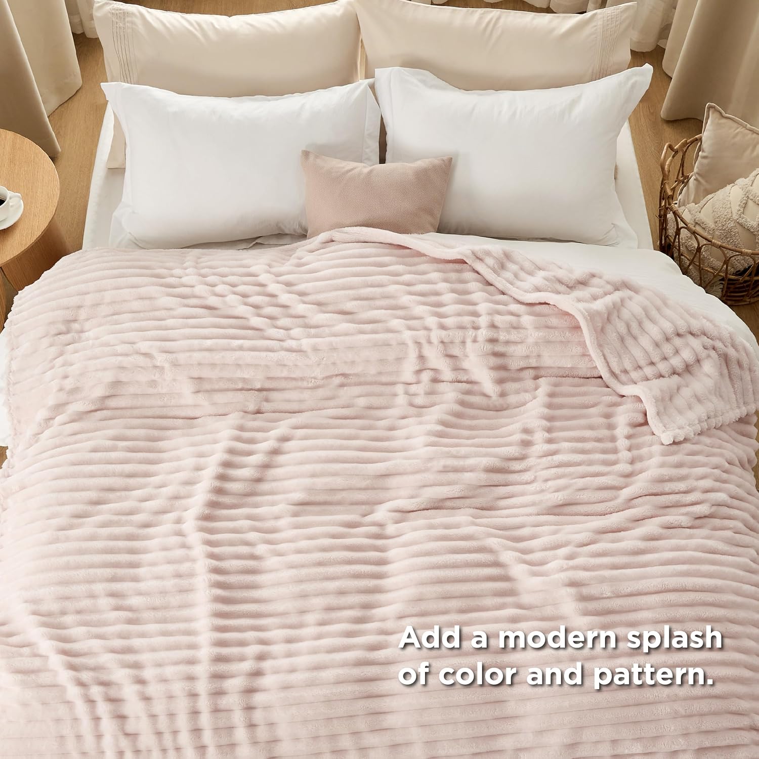 • ИЗКЛЮЧИТЕЛНИ ТЕКСТУРИ Това пухкаво одеяло е с класически шарки на райета, които създават допълнителен елемент и се съчетават добре с декора на вашата стая.