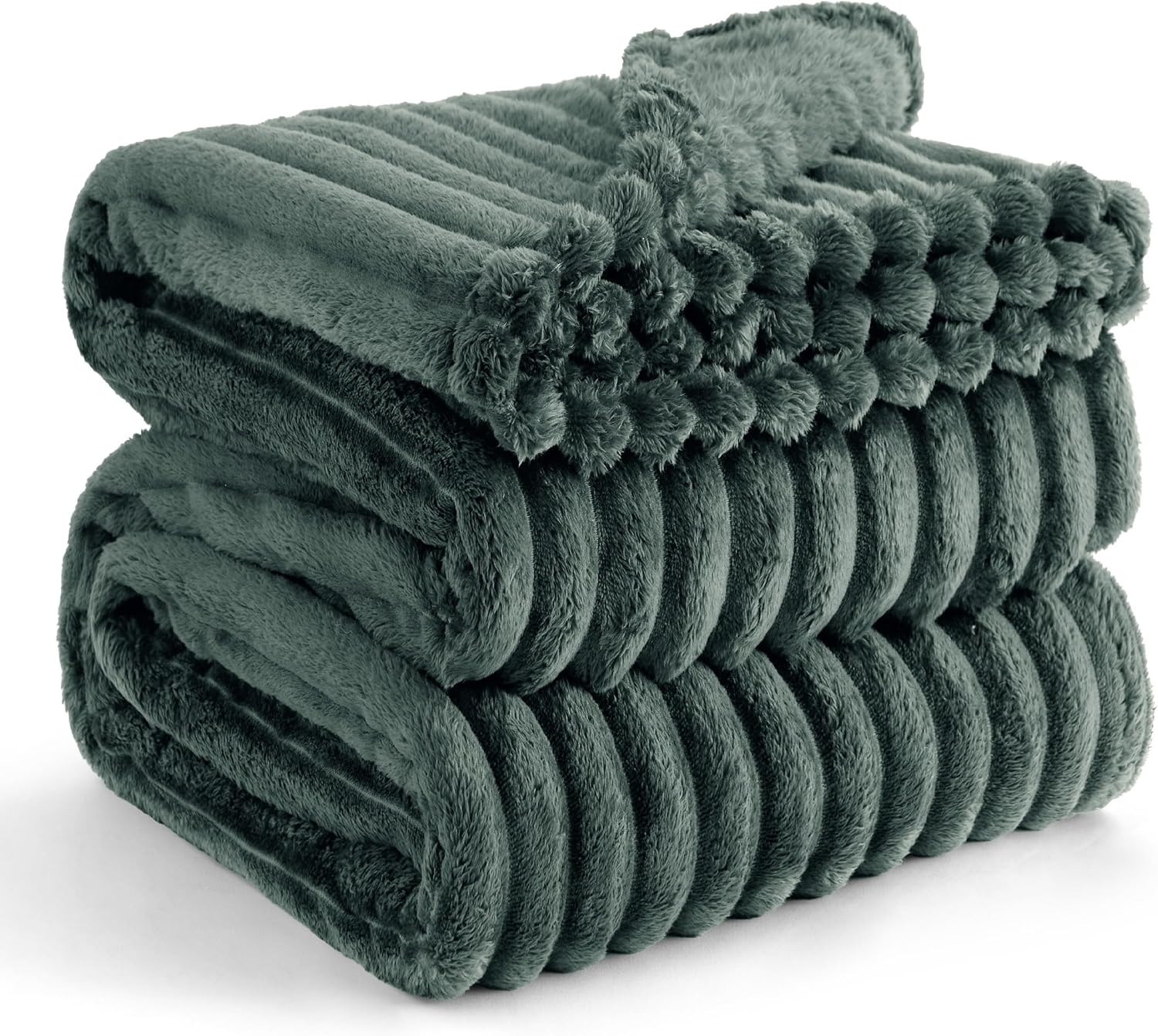 Гулено одеяло BEDSURE 220 x 240 см - Кувертюра за легло, Вълнено одеяло и Поларно одеяло, Одеяло за диван, Меко топло дебело одеяло с шнур за декорация на стая, За хол и пухкави одеяла, Голямо одеяло, Тъмно