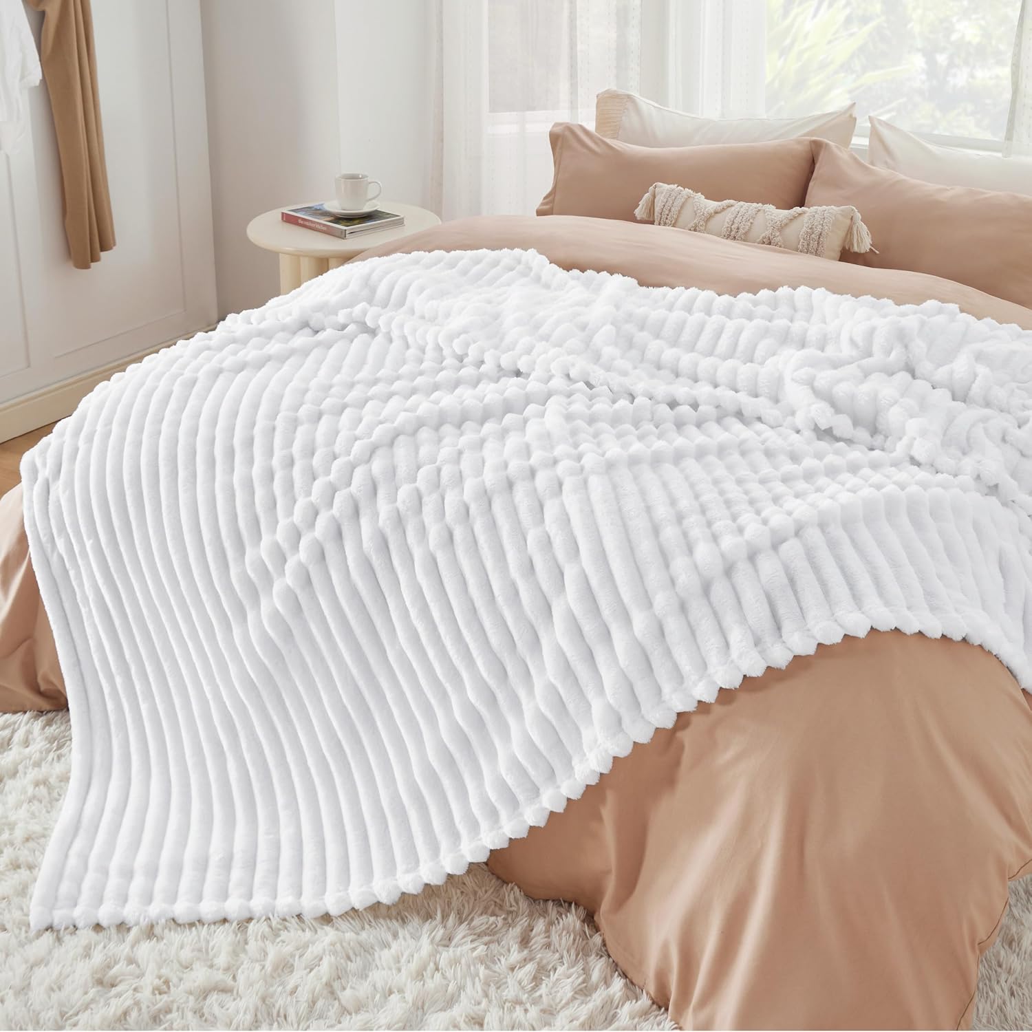 Гулено одеяло BEDSURE 220 x 240 см - Кувертюра за легло, Вълнено одеяло и Поларно одеяло, Одеяло за диван, Меко топло одеяло с дебел шнур за декорация на стая, Одеяла за хол и пухкави одеяла, XXL голямо одеяло, Бяло, 220