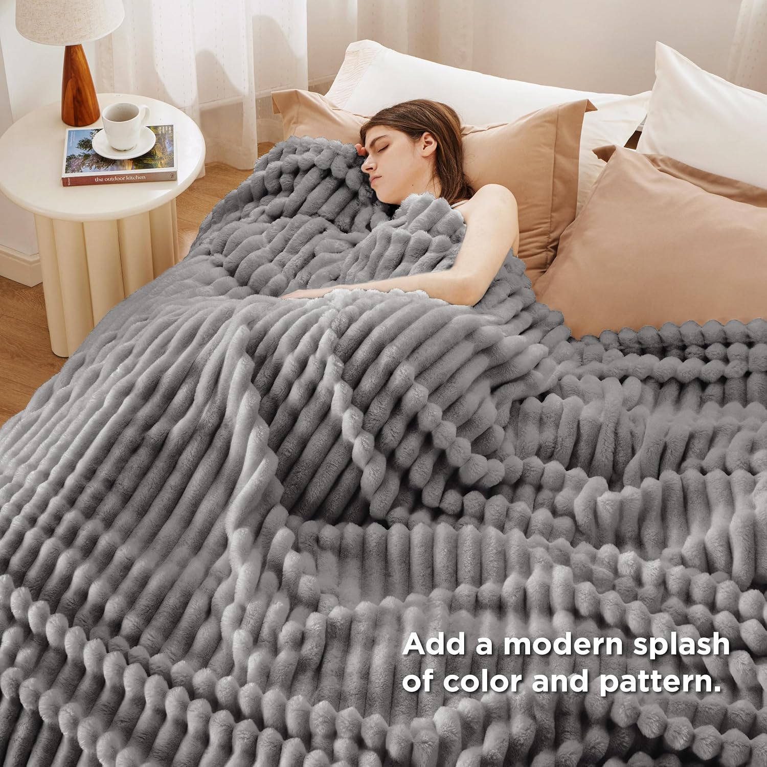 Гулено одеяло BEDSURE 220 x 240 см - Кувертюра за легло, Вълнено одеяло и Поларно одеяло, Одеяло за диван, Меко топло одеяло с дебел шнур за декорация на стая, Одеяла за хол и пухкави одеяла, XXL голямо одеяло, Сиво, 220