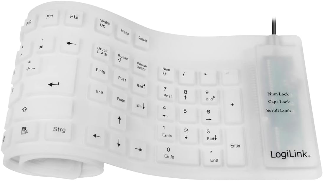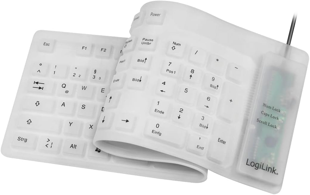 Гъвкава водоустойчива USB клавиатура LogiLink (немска QWETZ подредба на клавиатурата), бяла