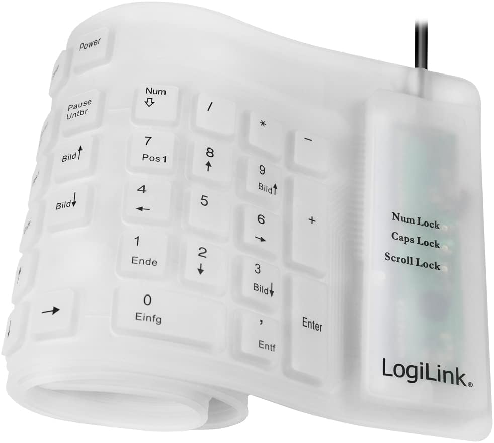 Гъвкава и изключително издръжлива клавиатура, изработена от висококачествен силиконов материал от LogiLink. Подходяща за работни места с повишен риск от замърсяване. Лесна за почистване с гъба и изплакване с вода. Почти неразрушима и се навива, за да се спести място. Клавиатурата е напълно устойчива на прах, мръсотия и вода. Налични цветове: бяло (ID0018A), черно (ID0019A), синьо (ID0035A).
