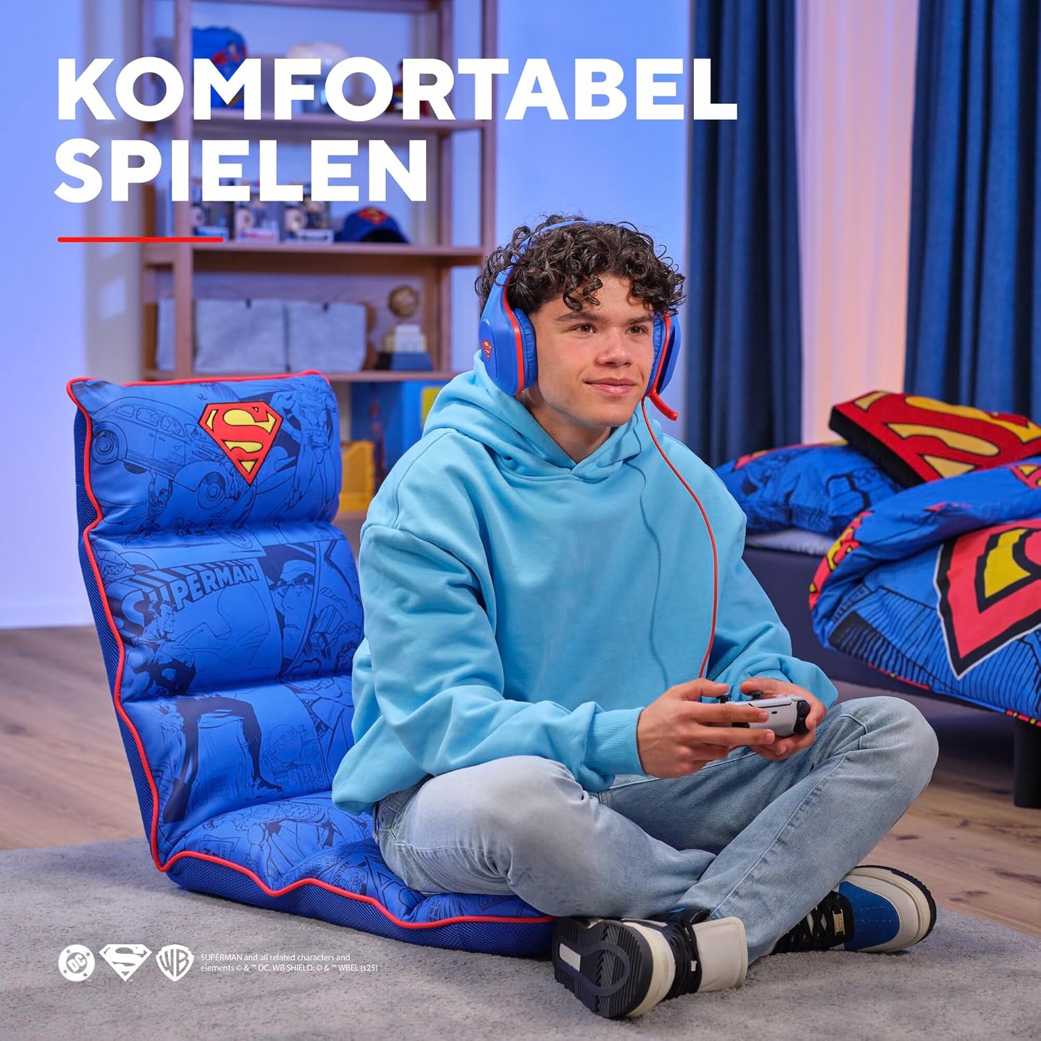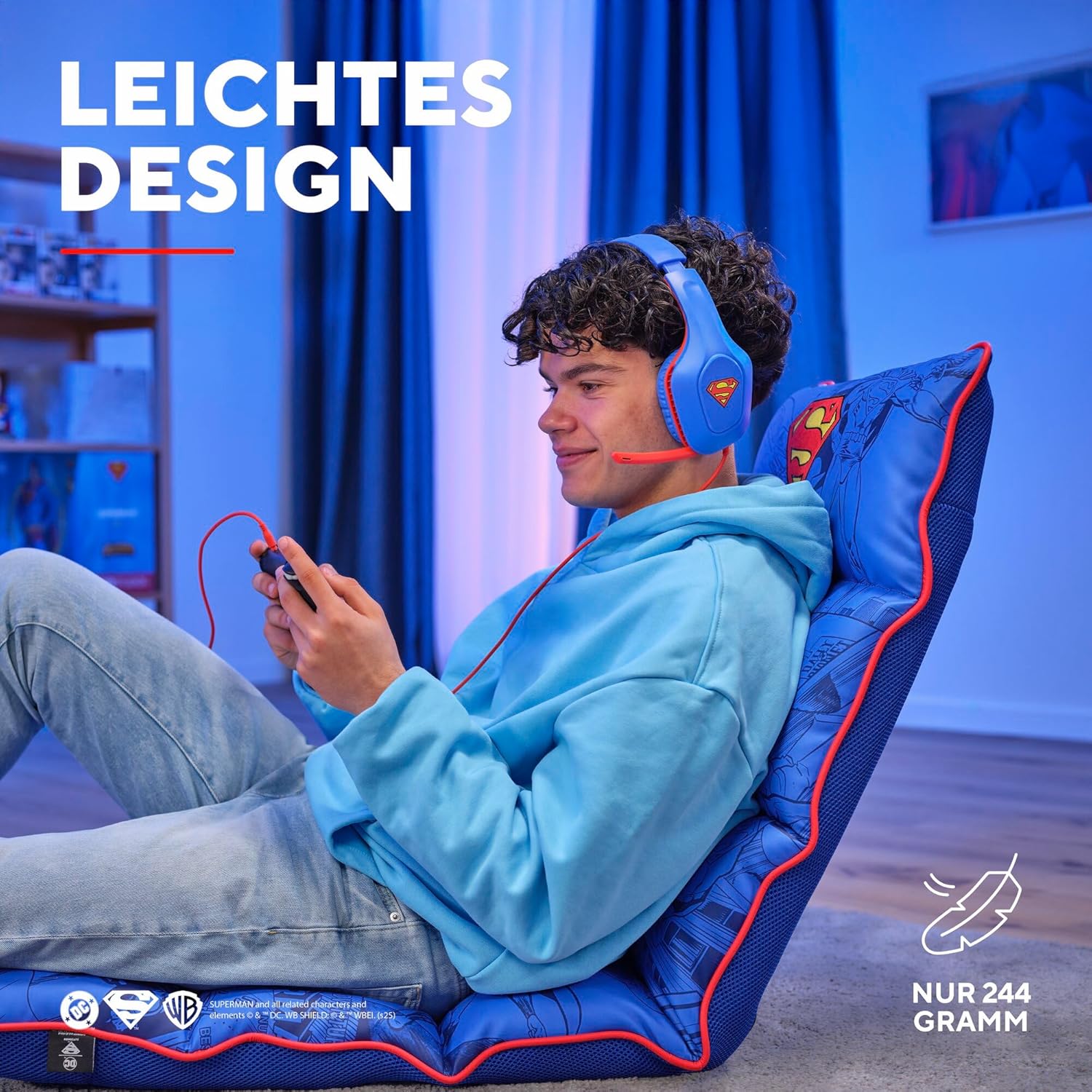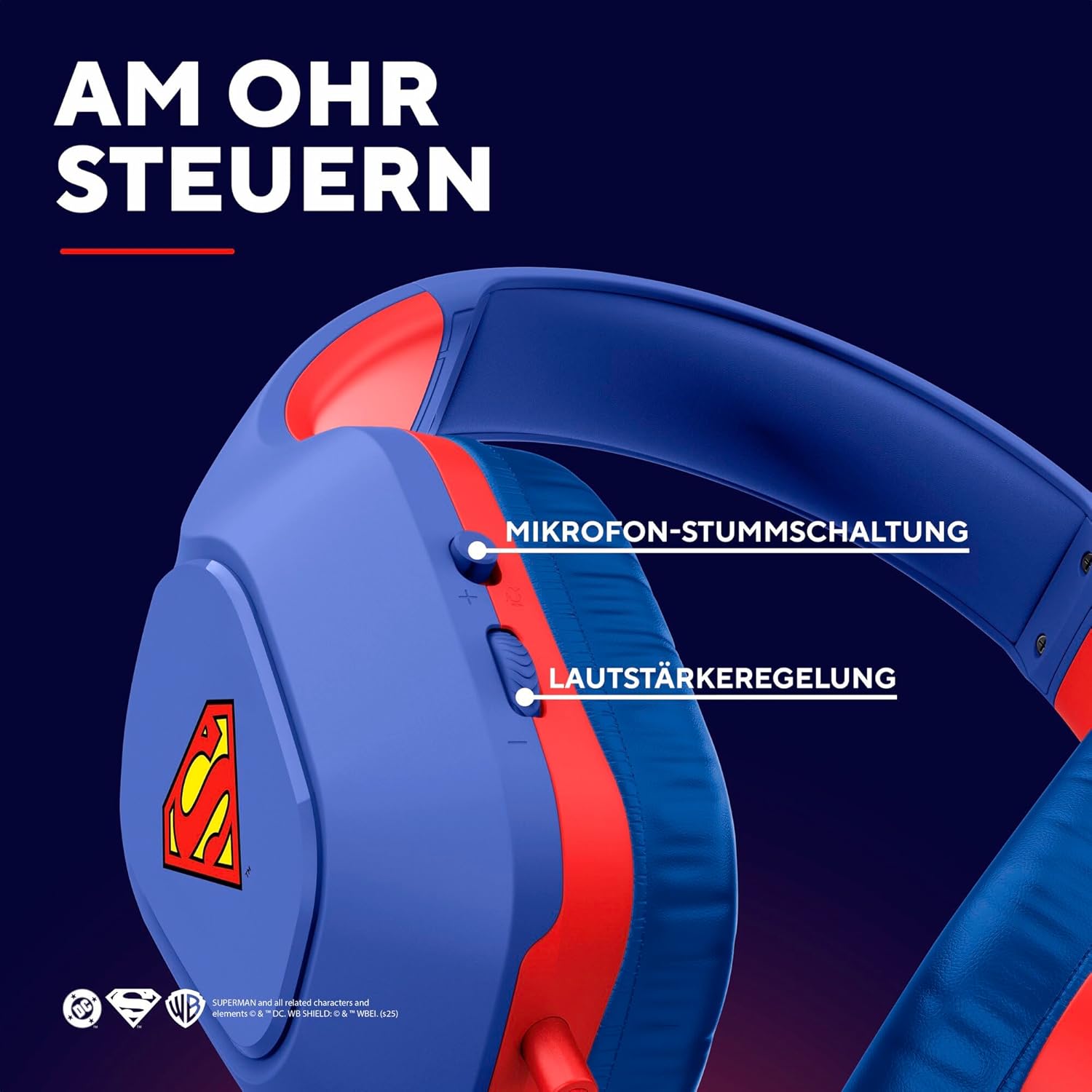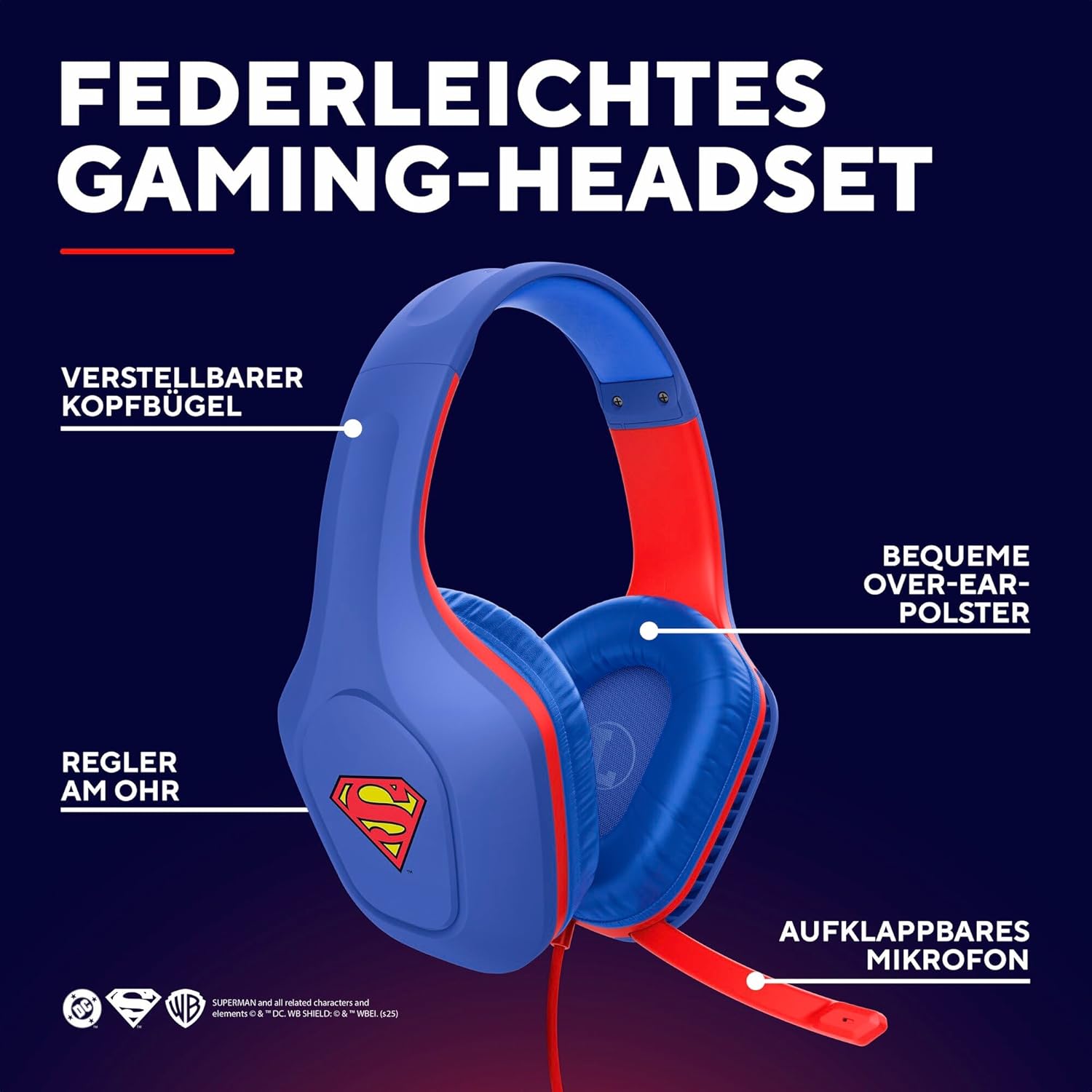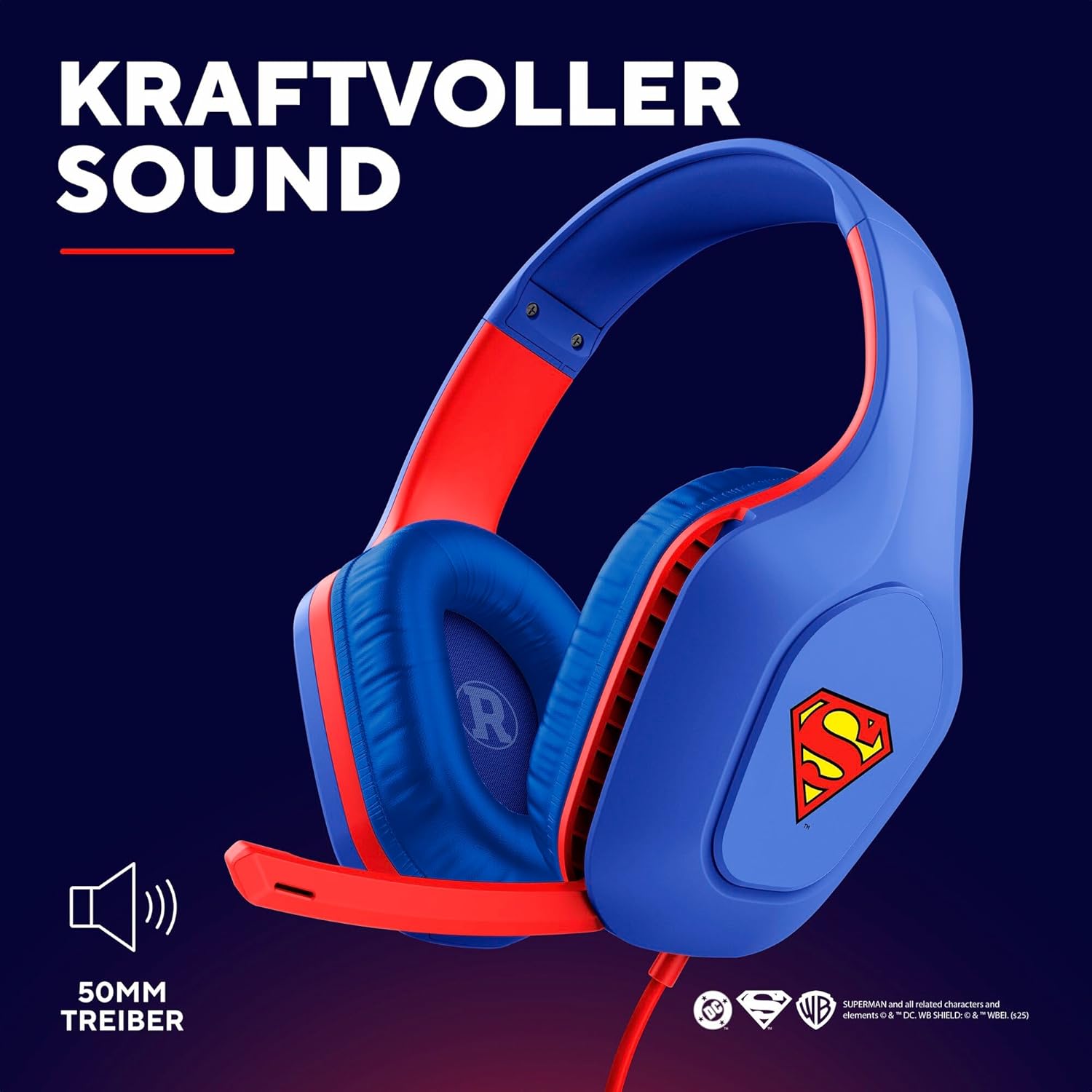 GXTrust 415SM Zirox Superman Licensed Gaming Headset за PC Xbox PS4 PS5 Switch Mobile, 50 мм драйвер, 1.2 м кабел, 3.5 мм аудио порт, леки слушалки с кабел, синьо/червено