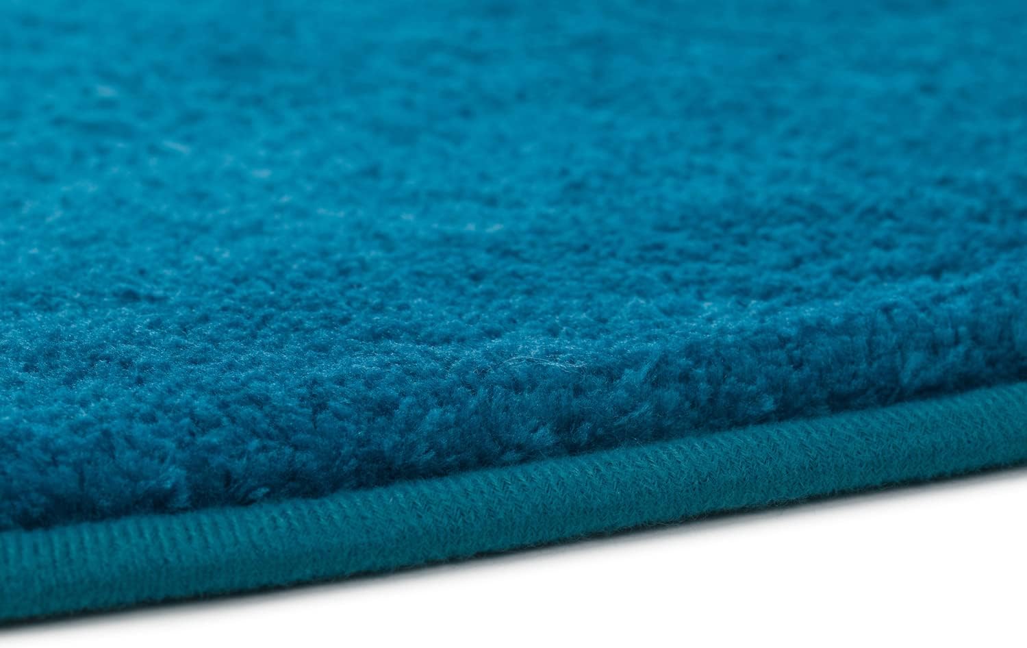 Gözze - Висококачествен неплъзгащ се кръгъл килим за баня, RIO, 100% микрофибър, диаметър 110 см, петролно синьо