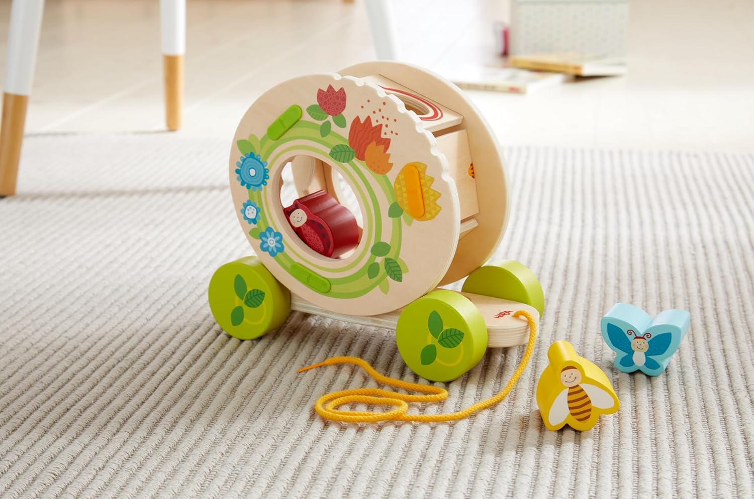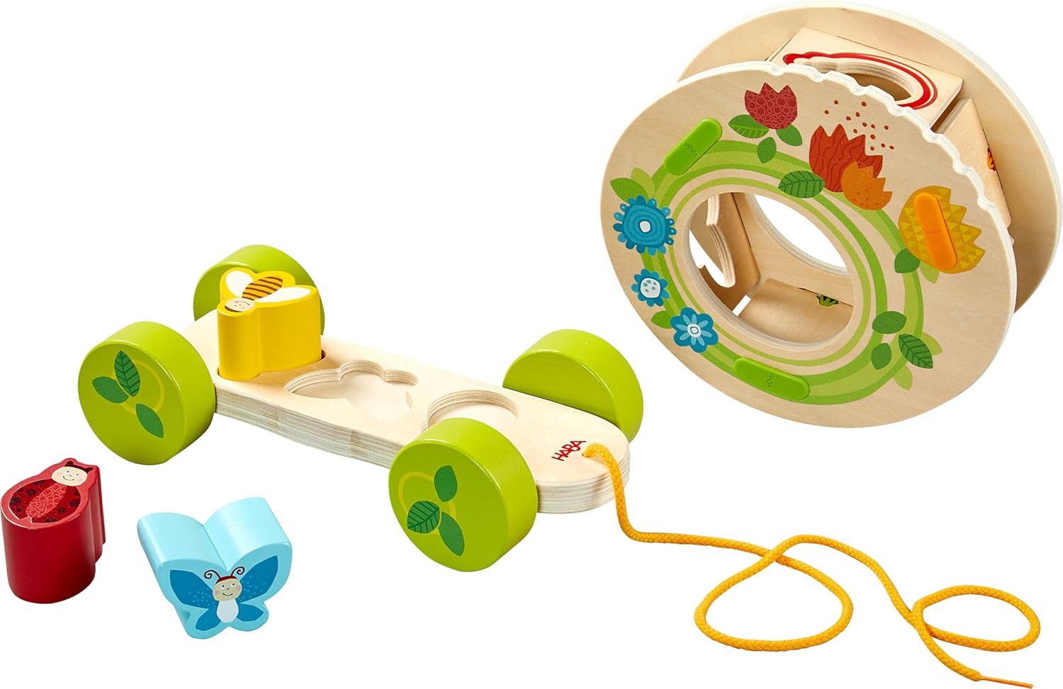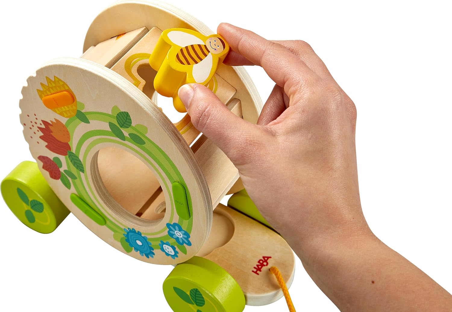 HABA Фигурка за дърпане Цветна поляна, дървена играчка, играчка за дърпане, за деца от 1 година