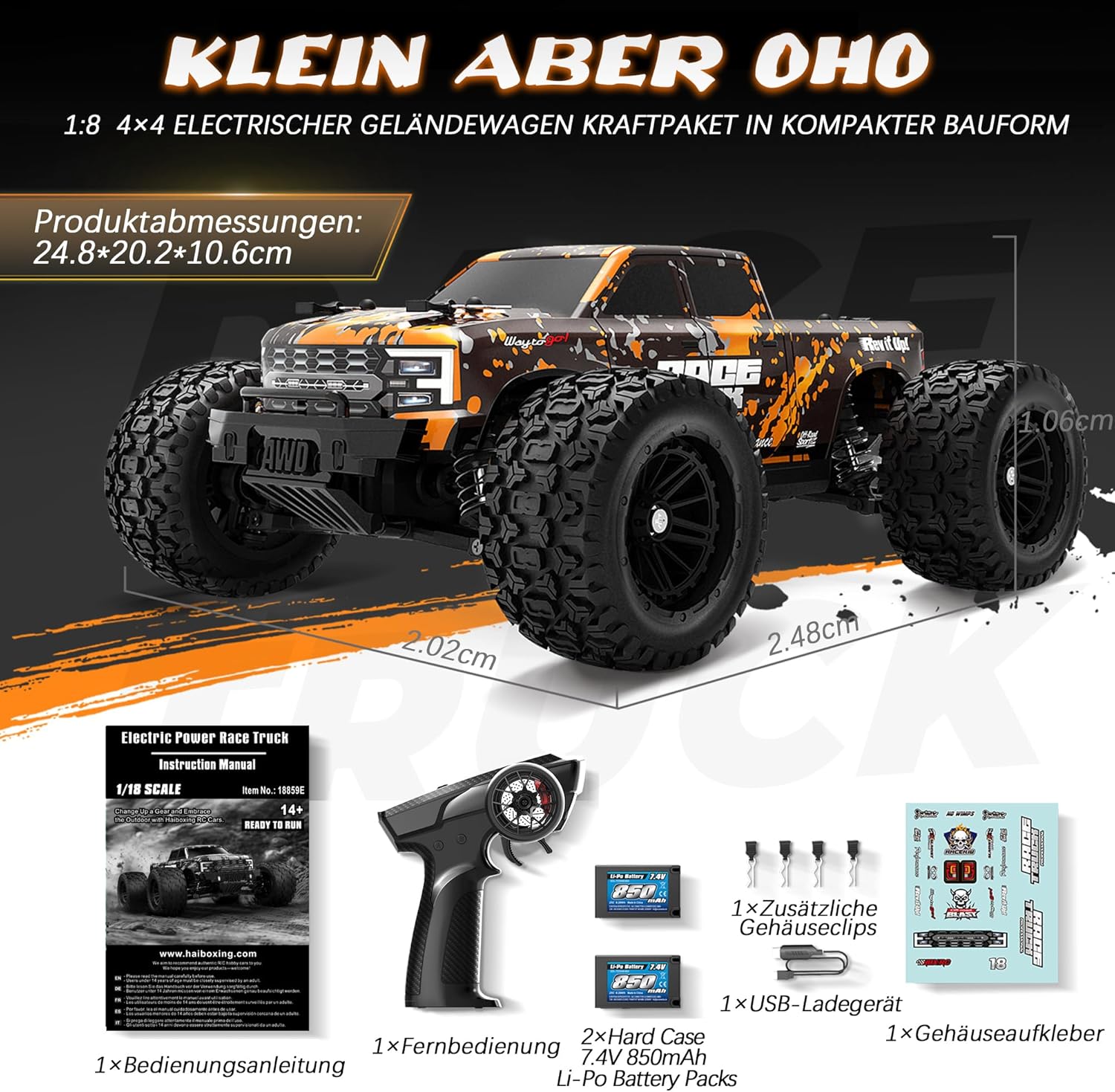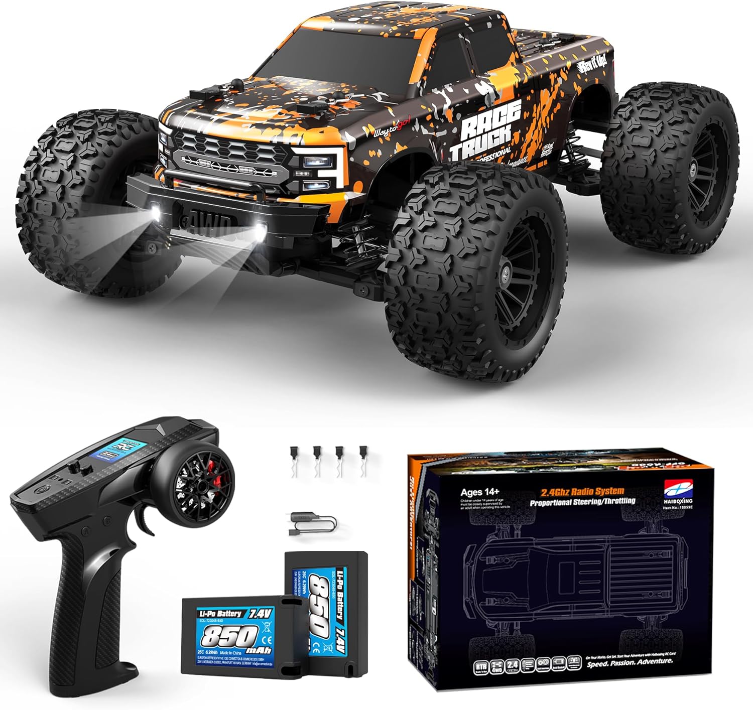 HAIBOXING Дистанционно управлявана кола 4WD RC кола 36 км/ч Висока скорост 1/18 RC Monster Truck 2.4GHz Всички терени Водоустойчива състезателна кола Офроуд превозно средство Дистанционно управление Monster Truck за деца и възрастни