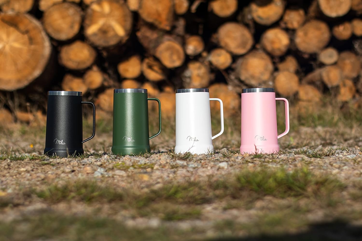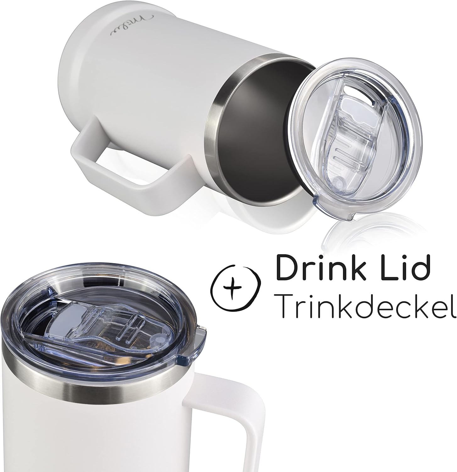 Халба за бира Milu от неръждаема стомана с изолация | Чаша за бира с капак | Термос с дръжка | Подарък за бира за мъже, татко | Запазва студена 7 часа (700 мл, бяла)