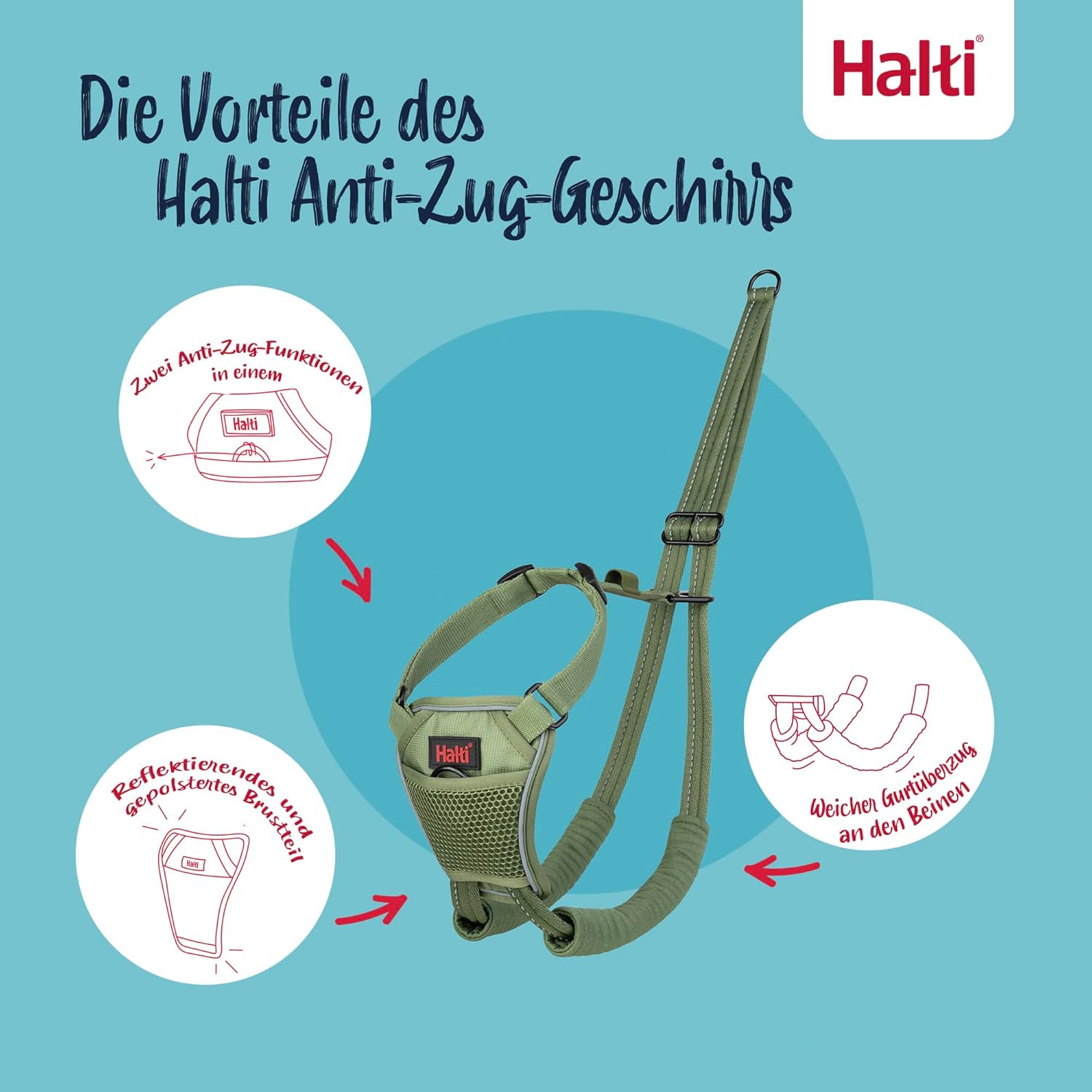 Стъпка 6: За оптимално обучение без дърпане, винаги препоръчваме използването на тренировъчен повод Halti с двойна щипка. Прикрепете малката щипка на каишката към предния контролен пръстен на колана, а по-голямата щипка към задния пръстен на колана.