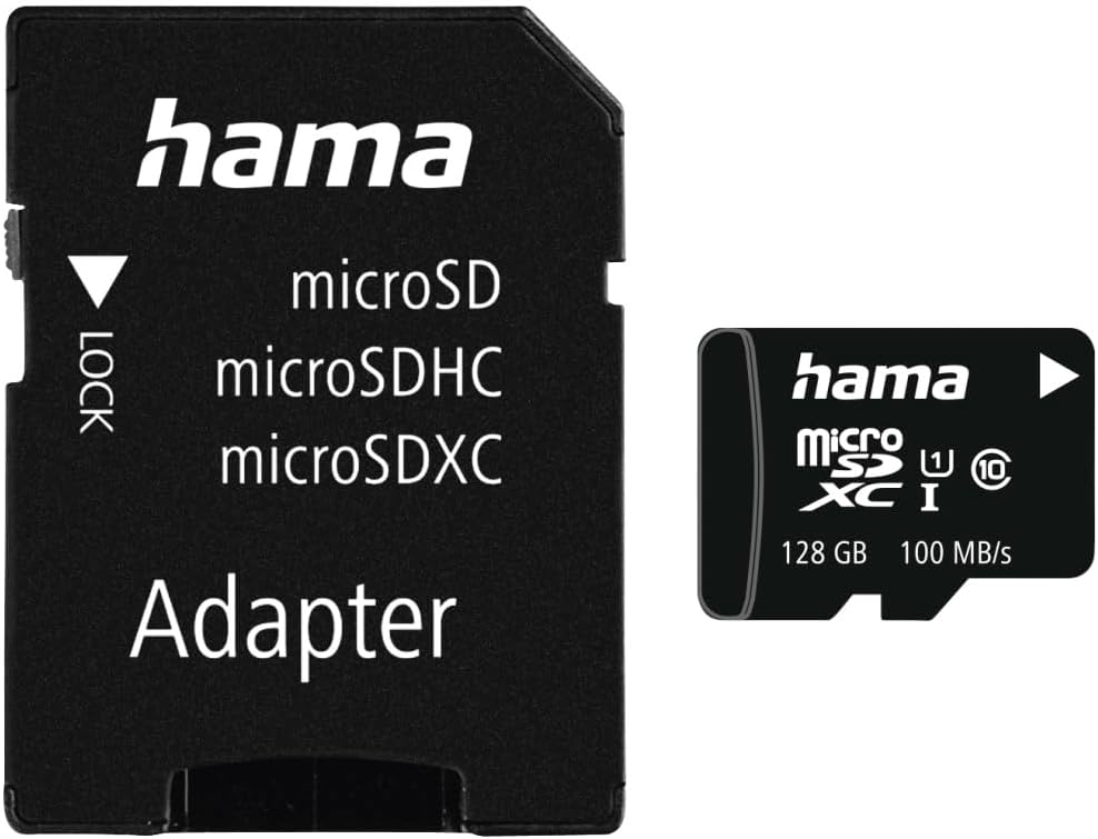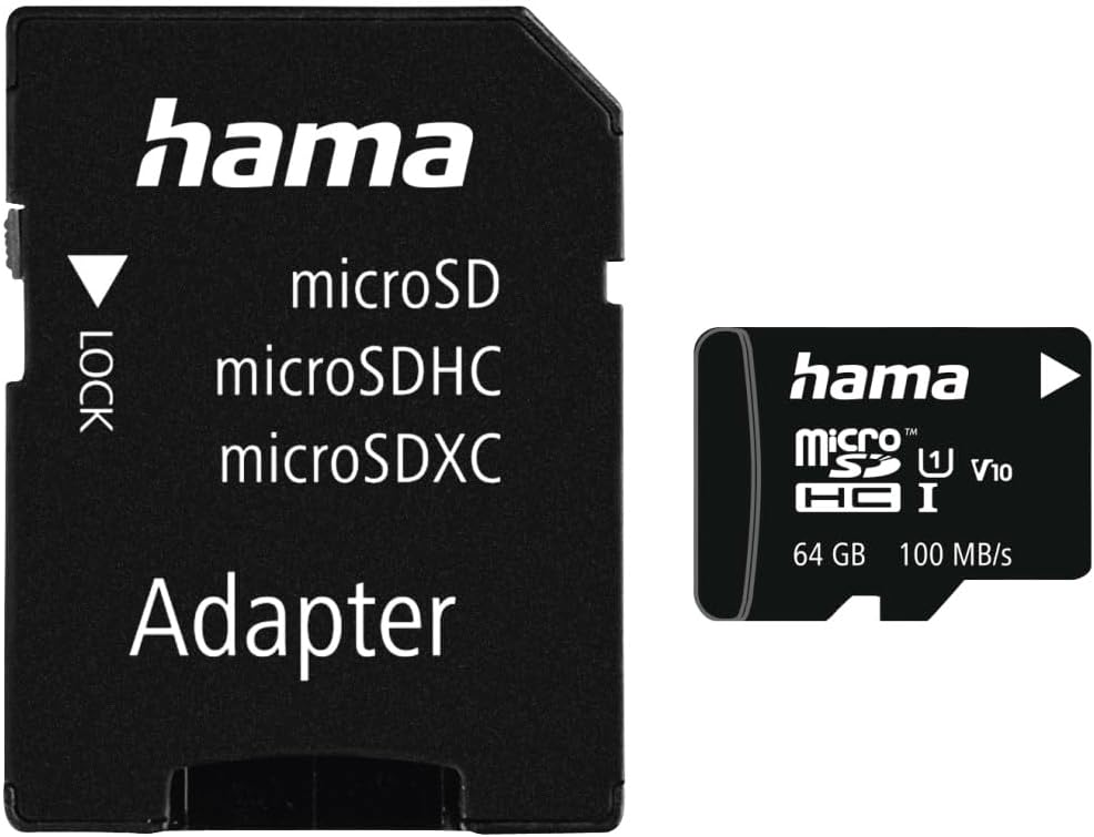 Сменяема micro SecureDigital Extended Capacity карта памет (microSDXC), отговаряща на новия стандарт SD-3.01, особено подходяща за запис на Full HD видео в реално време и 3D видео. Адаптер за SD карта формат.