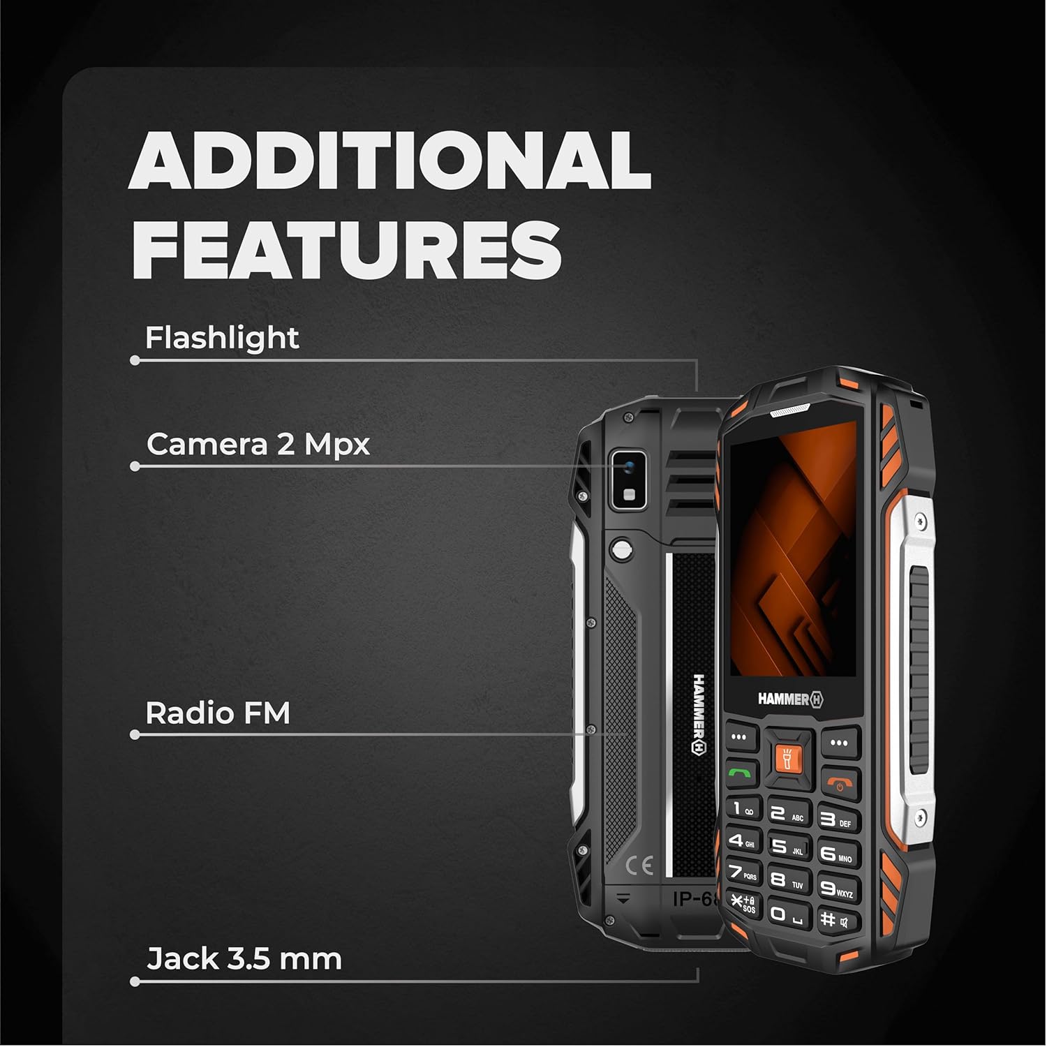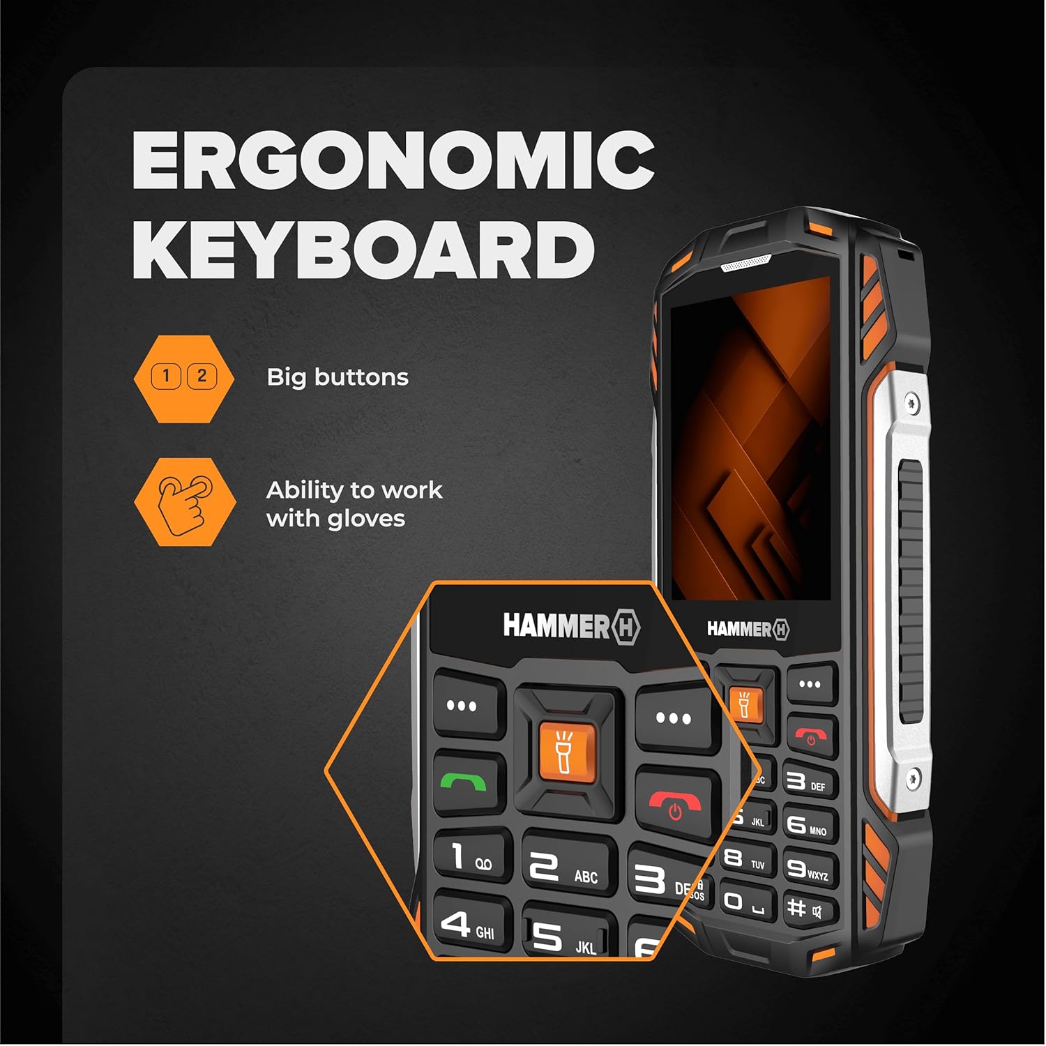 The TFT screen on HAMMER FORGE does what it should - it's bright, contrast-rich, and tough. It shows what matters, no gimmicks. You can read it clearly in noisy environments, with gloves on, or in low light. Simple, effective, and built to work – just like the rest of the phone.