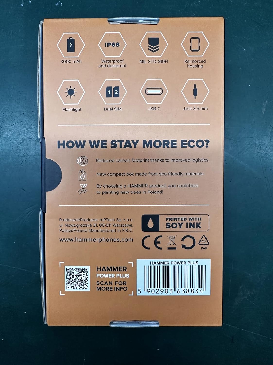 Брониран корпус IP68: Hammer Power Plus издържа на падания от 1,5 м, проникващ прах и пълно потапяне благодарение на уплътнението IP68 и военния стандарт MIL-STD-810H. Здравата, запечатана конструкция предпазва електрониката и дисплея от скъпи ремонти. Вземете го със себе си на места, където конвенционалните смартфони отдавна са се отказали. Работите безгрижно, защото вашият телефон прави всичко.