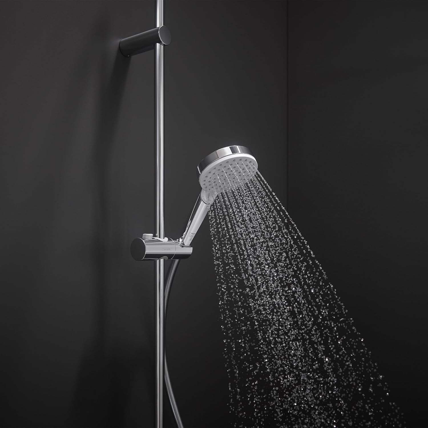 Ръчният душ Crometta Vario Green от hansgrohe съчетава устойчивост с удоволствие от душа. С два вида струи, ръчният душ осигурява специално водно удоволствие под душа: струята IntenseRain има освежаващ ефект и е идеална за изплакване на шампоан от косата. Мощната струя Rain е ободряващ свеж тласък за цялото тяло. И при двата вида струи дебитът се регулира автоматично до максимум 6 л/мин - дори при различно водно налягане (зелено). Това спестява пари, вода и енергия. Бърза смяна: видовете струи могат да се регулират директно върху душовата глава, като просто се завърти дискът на струята.