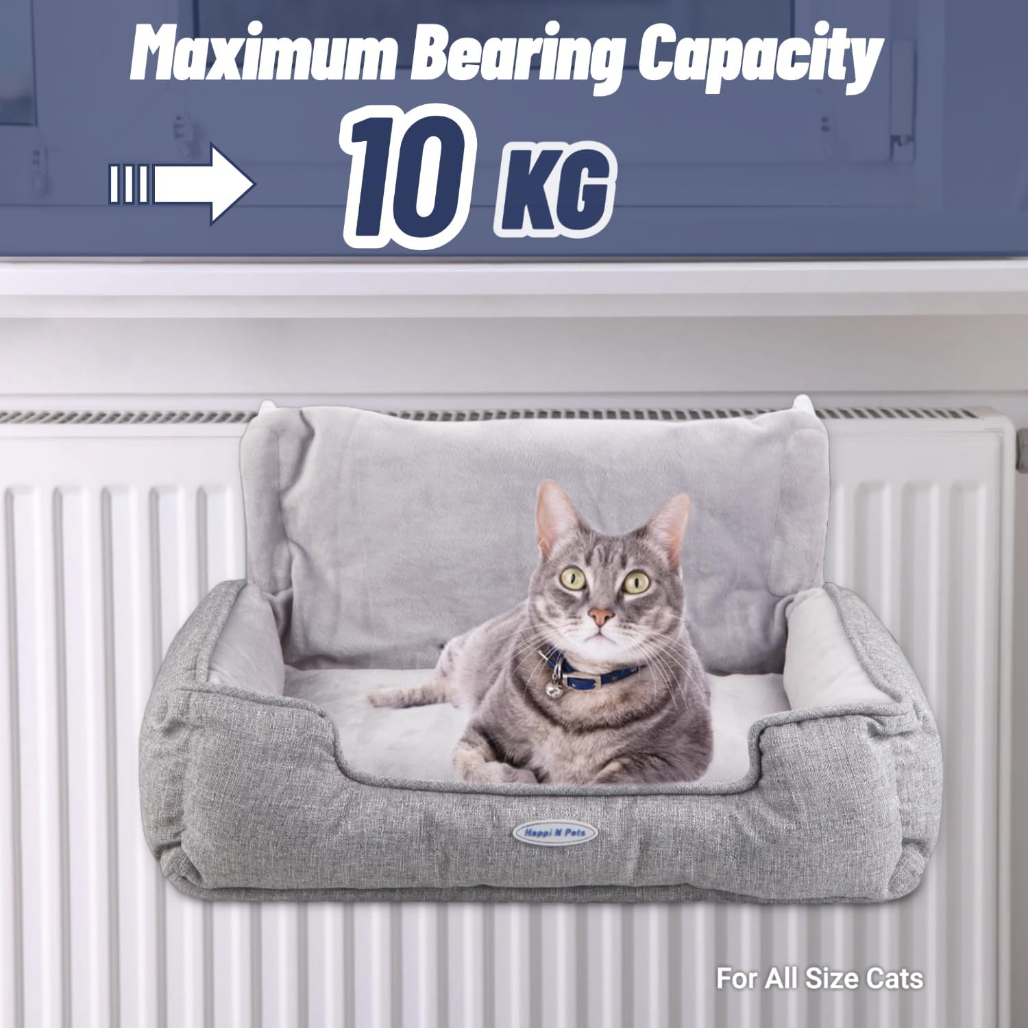 Happi N Pets Голямо котешко легло за отоплителни уреди, Пухкав котешки отоплителен шезлонг, Регулируема кука за различни отоплителни уреди, Котешки хамак за отоплителни уреди, Сив