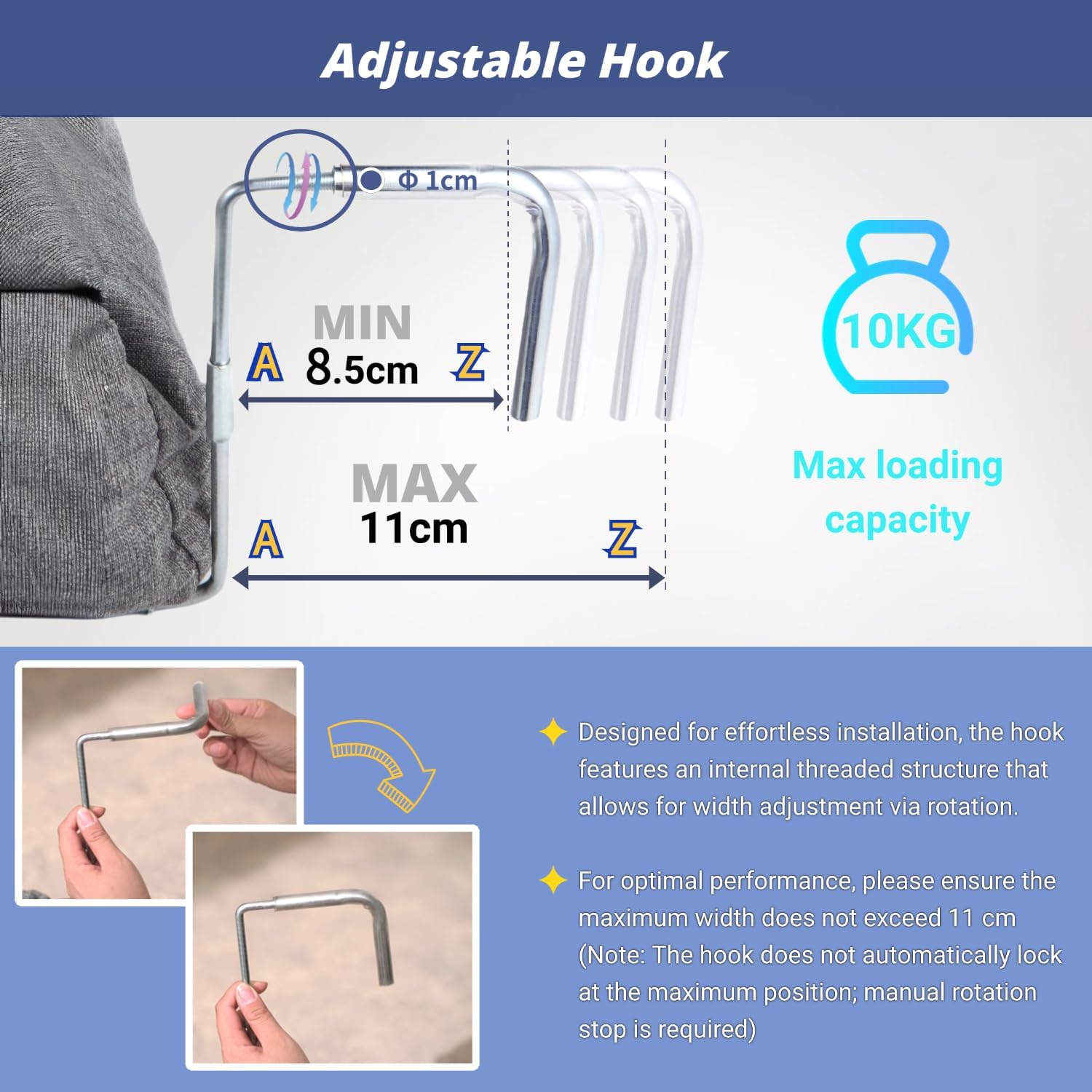 • 【Регулируема кука и приложение】Куката се регулира чрез завъртане от 8,5 см до 11 см, подходяща за повечето стенни радиатори/отоплятели. (Забележка: измерете предварително, ширината на вашия радиатор трябва да е поне 8,5 см и не повече от 11 см)
